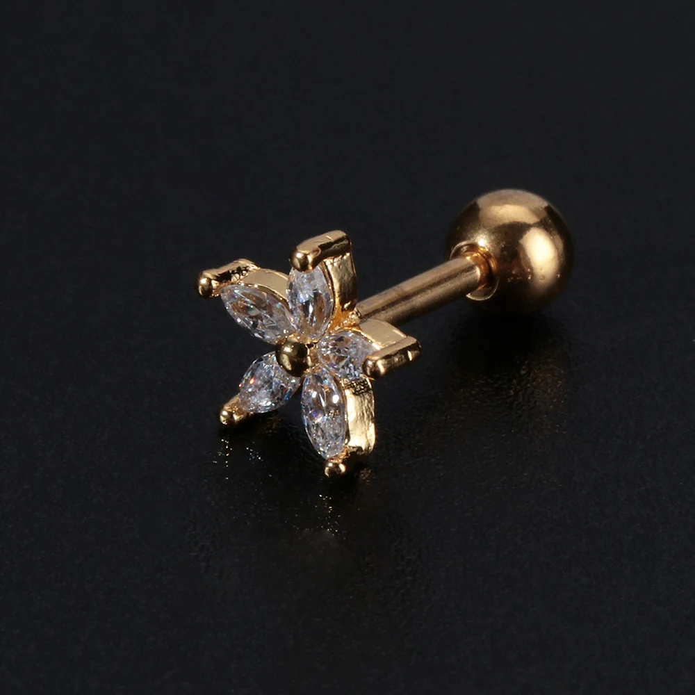 1 шт. Цветочное сердце Крест CZ серьги-гвоздики пирсинг Луна, Звезд...