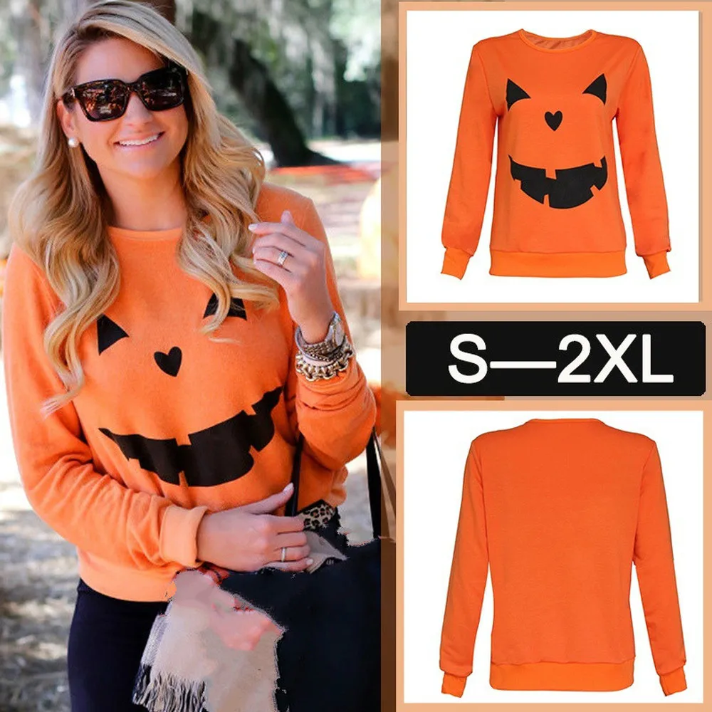 Модные женские туфли с длинными рукавами Толстовка тыквы на Хэллоуин, пуловер, свитер