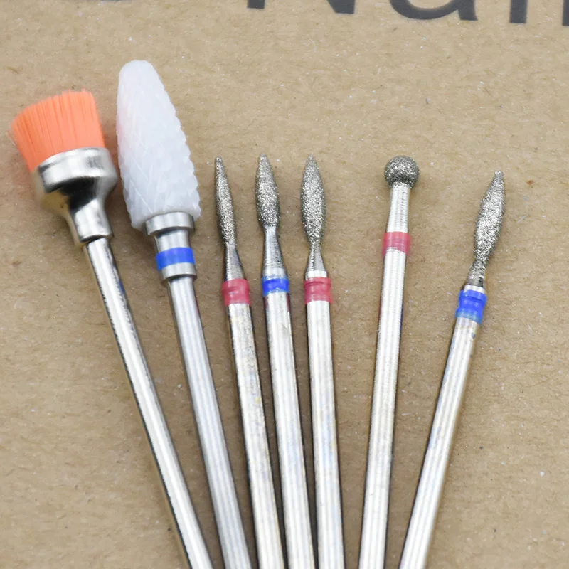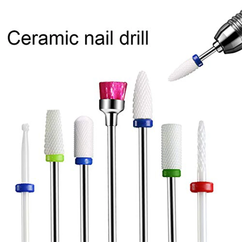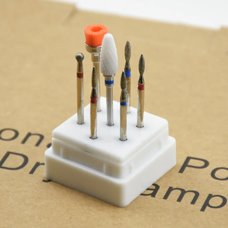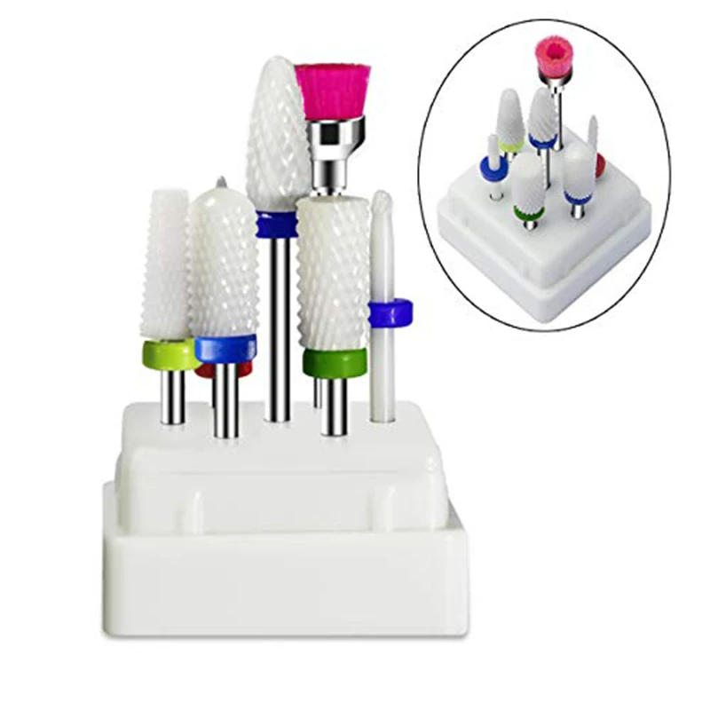 Набор керамических фрез для маникюра, 7 шт., аксессуары для электрического маникюрного аппарата, с акриловой коробкой, пилочки для ногтей, инструменты для дизайна ногтей