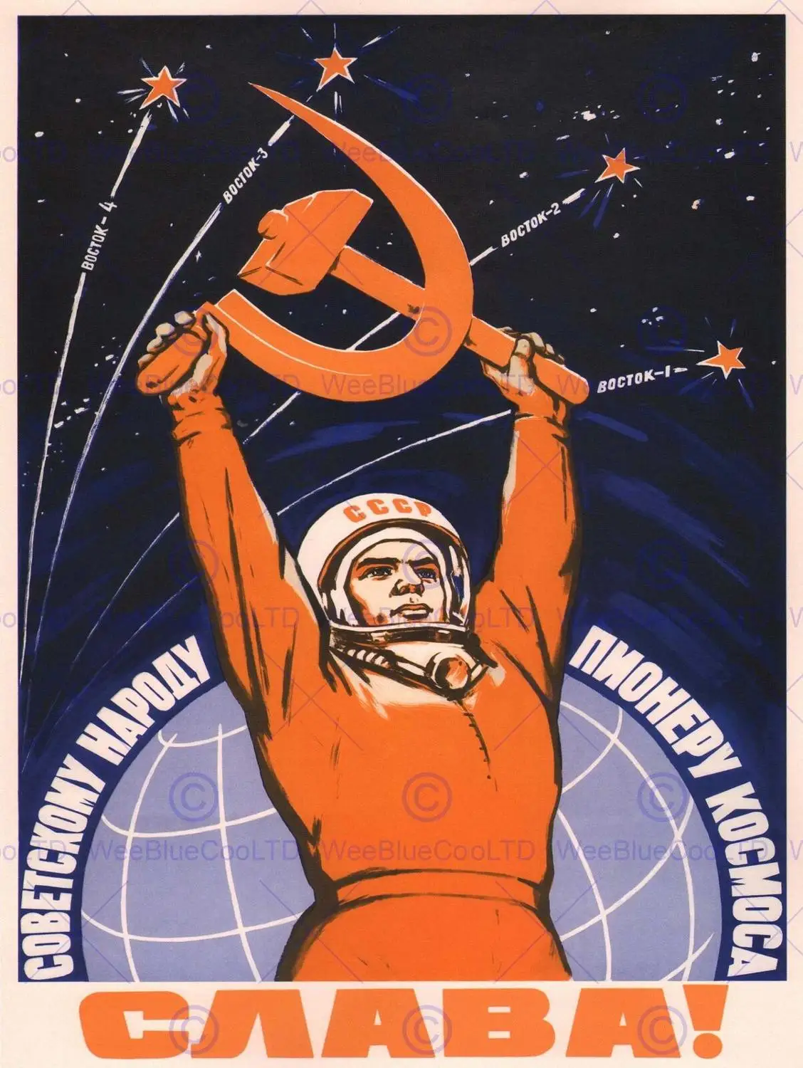 Пропагандистский космонат Гагарин СССР красный коммунизм б Шелковый постер наклейка на стену украшение подарок
