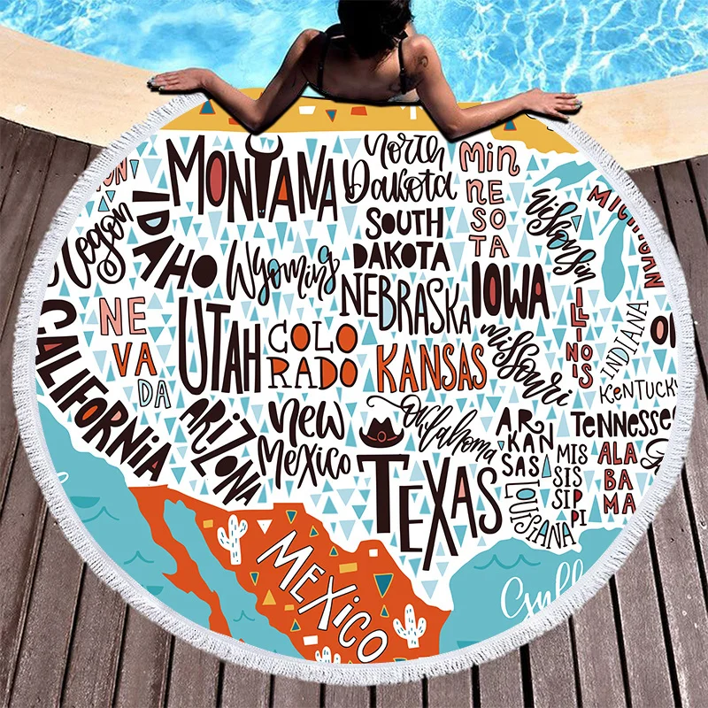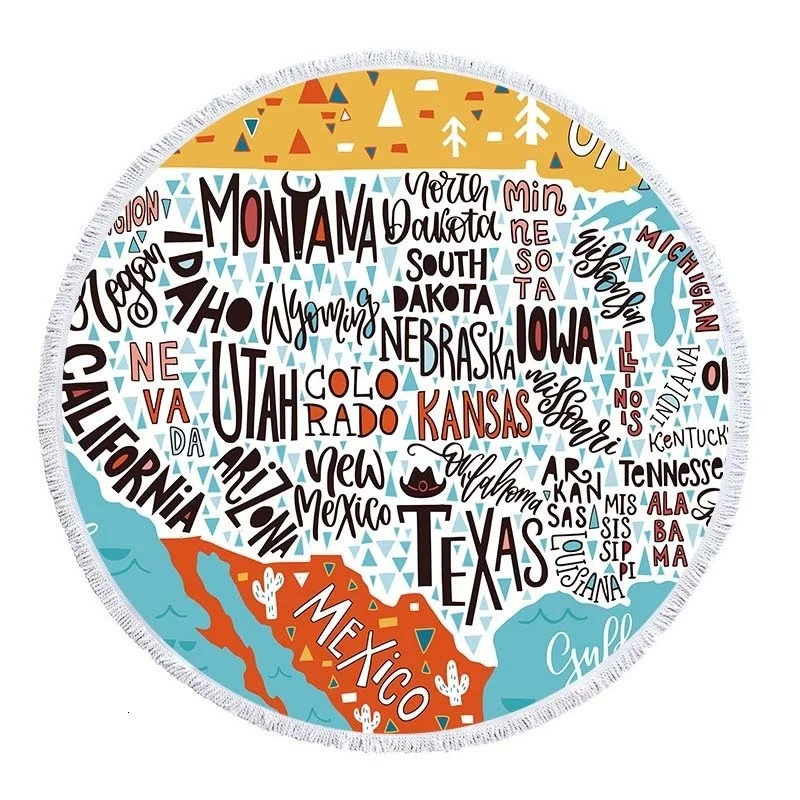 Земной мир карта напечатано Большое пляжное полотенце кистями дома большой круглый круг микрофибра ткань для йоги пикника одеяло шаль ковер