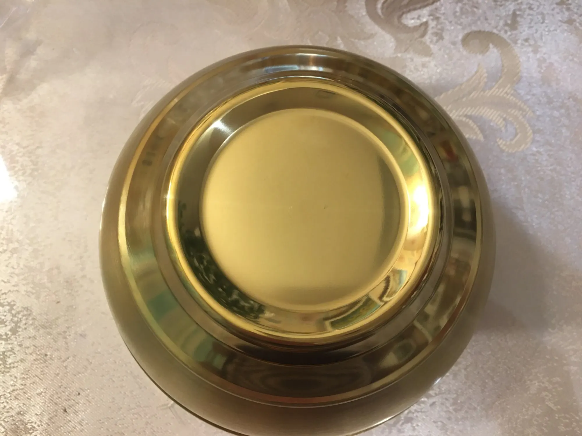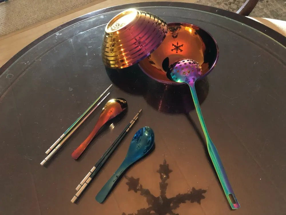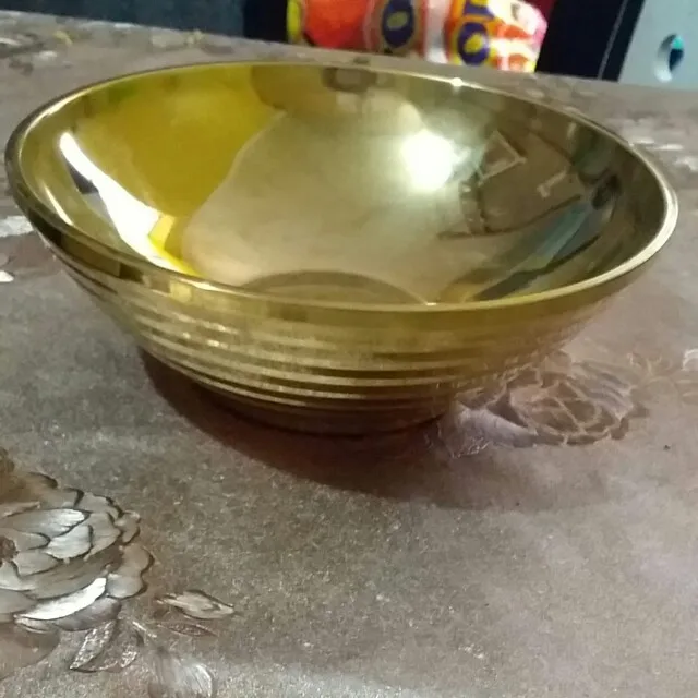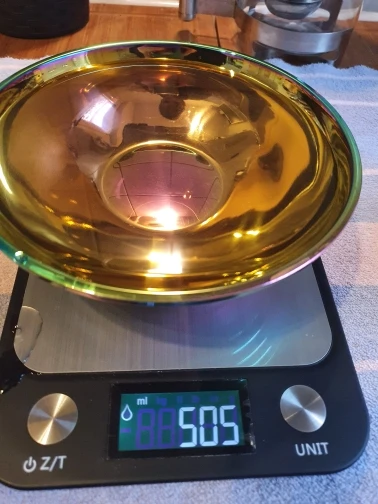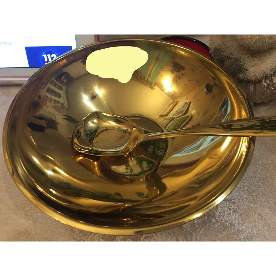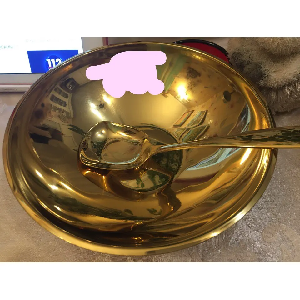 Это так круто есть из золотой посуды! Она тяжеленькая, не как походная. Смотрится непривычно на кухне, но вот лапшичка в ней выглядит очень аппетитно. Пельмени вот нет) Размер удобный, моется легко, глубокая, на хорошую такую порцию, после посудомойки с ней ничего не случилось.