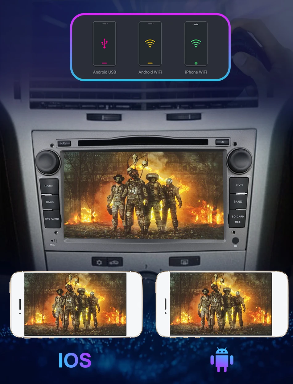 Поддержка зеркального соединения для устройств Android и IOS через usb-кабель или Wi-Fi. Это может обеспечить взаимный контроль между этим устройством и вашим телефоном