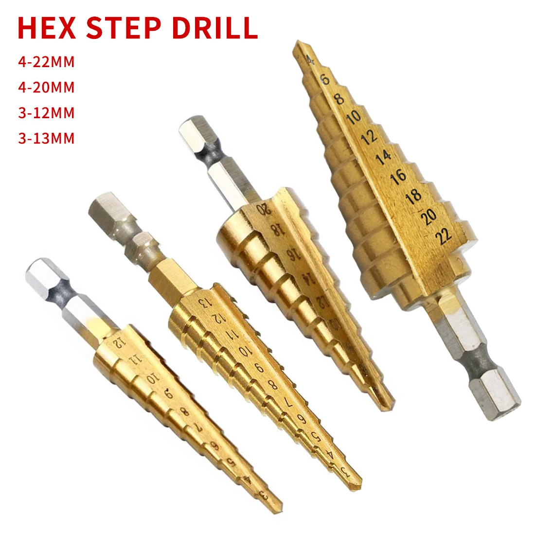 Ступенчатое сверло из быстрорежущей стали, в форме пагоды, с титановым покрытием, шестигранный хвостовик, для дерева и металла, 3-1213 мм, 4-2022 мм