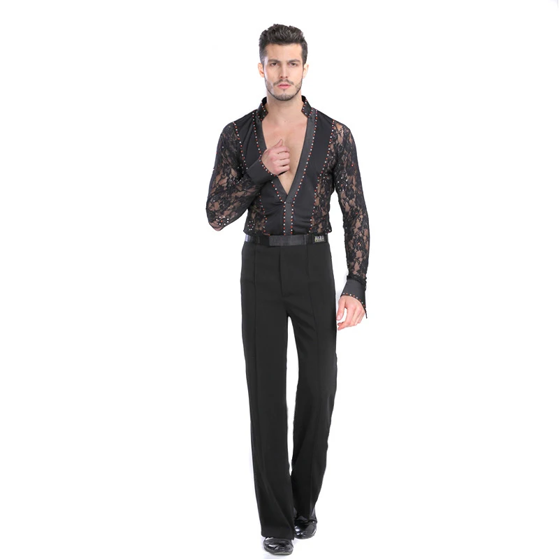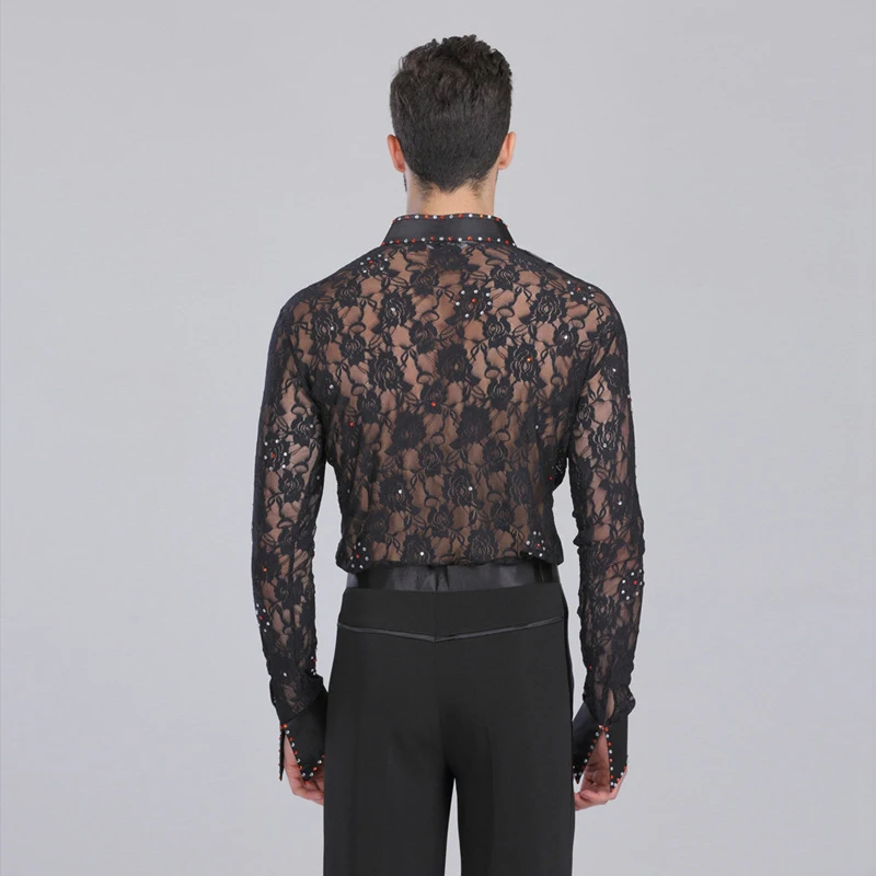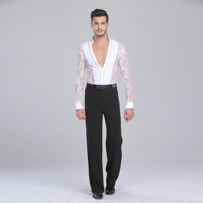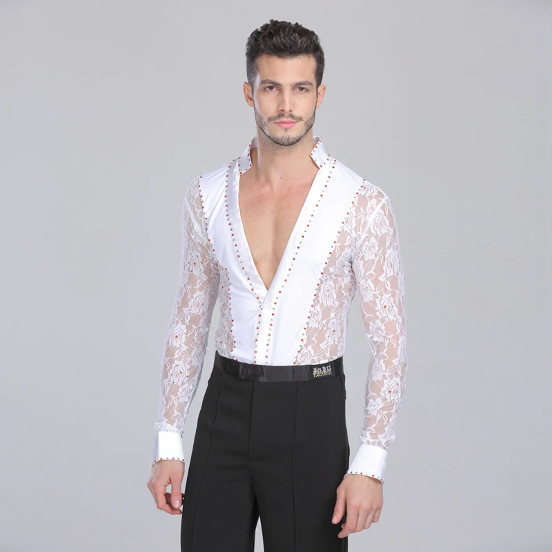 Рубашка мужская кружевная с глубоким V-образным вырезом и длинным рукавом