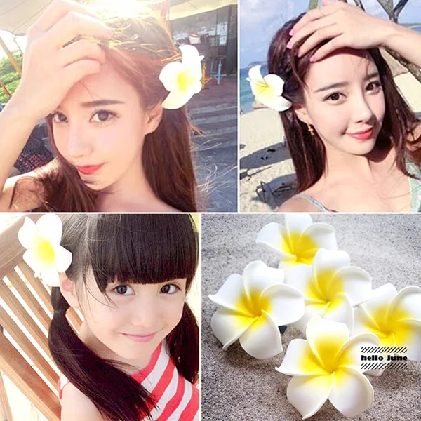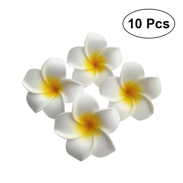 10 шт. 7 см заколка для волос Гавайский цветок, заколка для волос, имитационное яйцо, цветочный головной убор для пляж луau вечерние (белый с желтым)