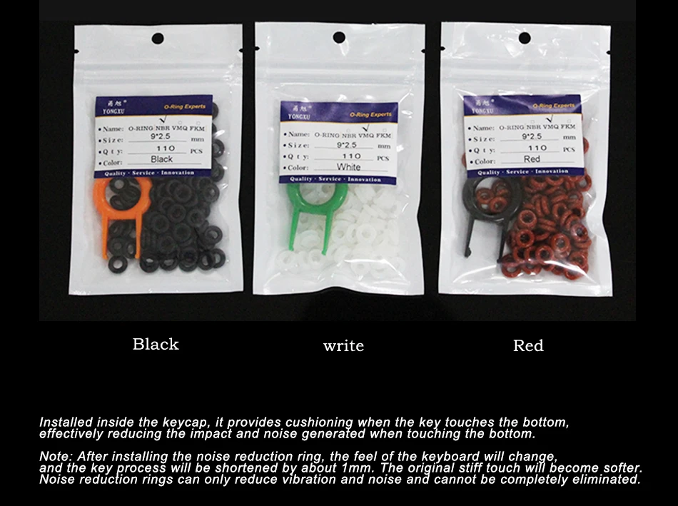 Хорошие толстые кольца, со своими руками-крюками так и не порвал ни одного при установке. Ставил на HyperX Alloy Elite - ход клавиш сократился почти вдвое, боттомаут стал более глухой, но стало слышно треск стабов. Такие дела.