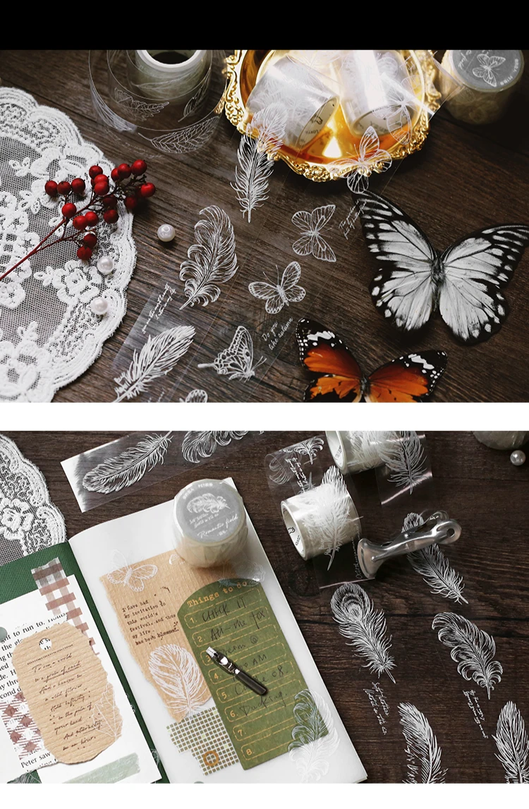 1 шт. прозрачная Васи-лента с перьями, бабочками и растениями, клей...