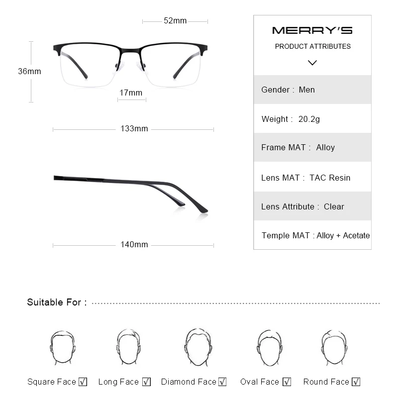 MERRYS Дизайнерские мужские модные очки с полуоправой по рецепту, оптические очки , квадратные очки для близорукости, мужские очки в деловом стиле S2168PG