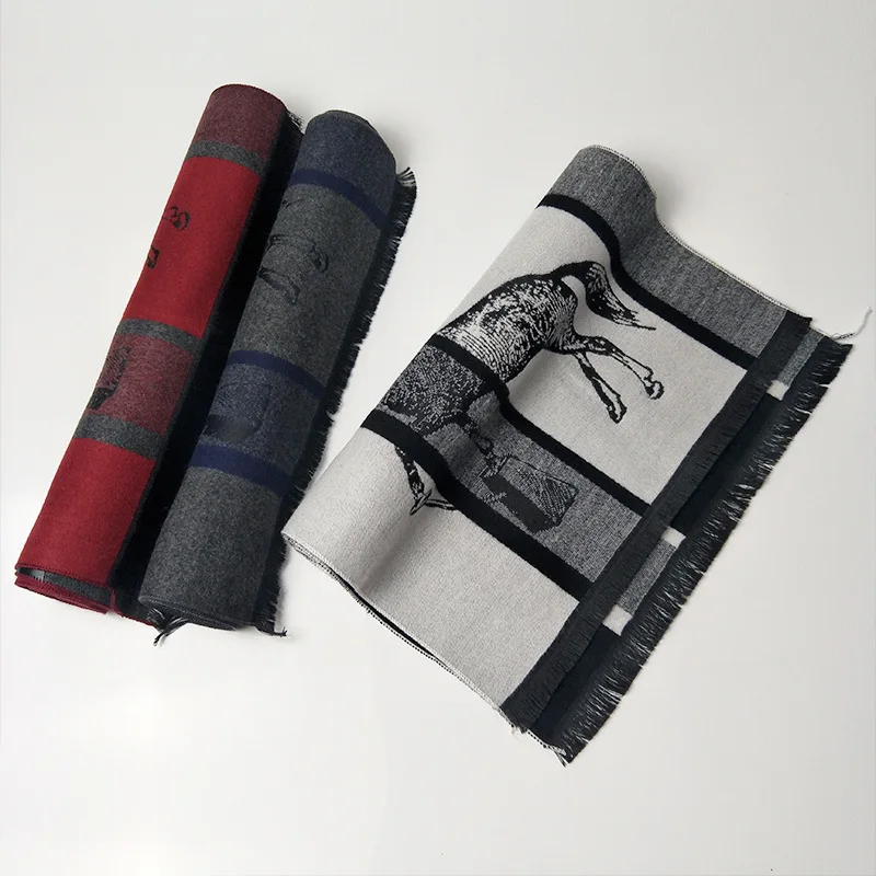 Шарф мужской, из искусственного кашемира, длинный, двусторонний, теплый