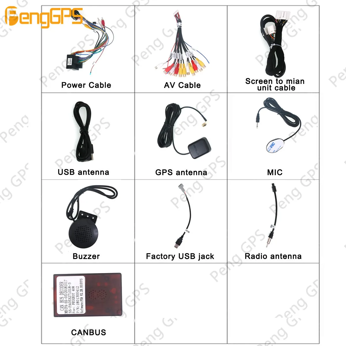 Наш продукт поставляется с GPS антенной, gps-картой для вашей страны, usb-адаптером, аудио и видео входным кабелем, кабелем питания... и т. д., все наборы для установки будут в посылка.