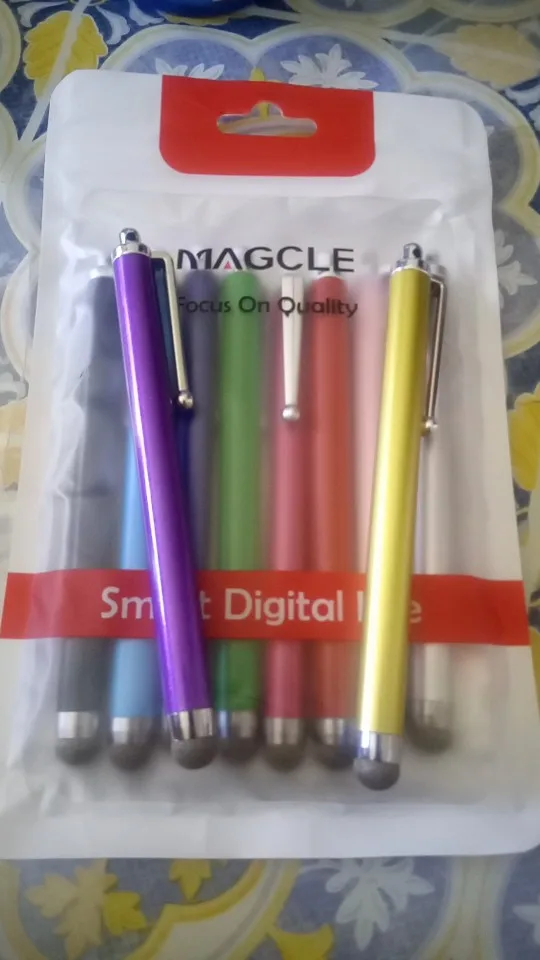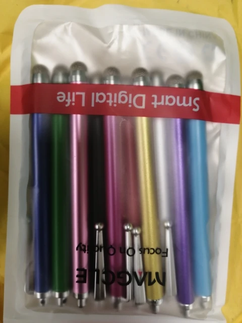 Стилусы хорошие, чувствительность отличная, единственный недостаток это цветовая гамма (цвета в основном "дамские"), розовые, голубые, зелёные и золотистые. качество товара на твёрдую 4+, что соответственно для этой цены очень хорошо. товар отправлен и доставлен очень быстро.