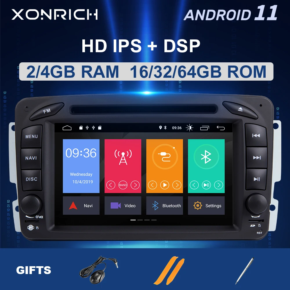 Автомобильный DVD-плеер IPS DSP 4 Гб ОЗУ 64 Гб 2 Din Android 11 для Mercedes Benz CLK W209 W203 W463 W208 Multimeida GPS Радио стерео аудио