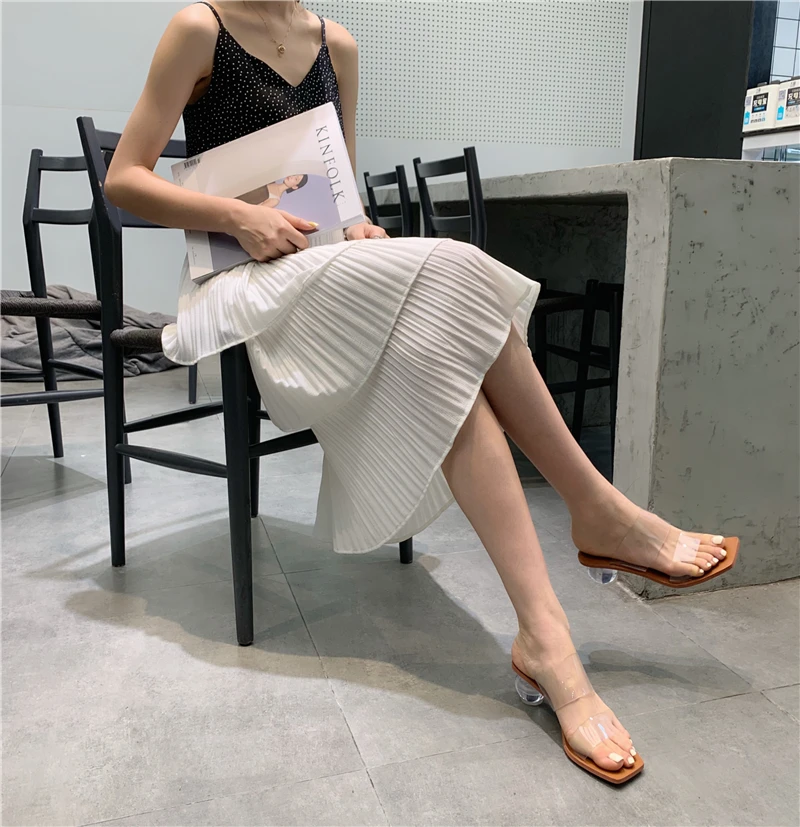 Туфли-шлепанцы женские из ПВХ, прозрачные, с открытым носком, на низком каблуке
