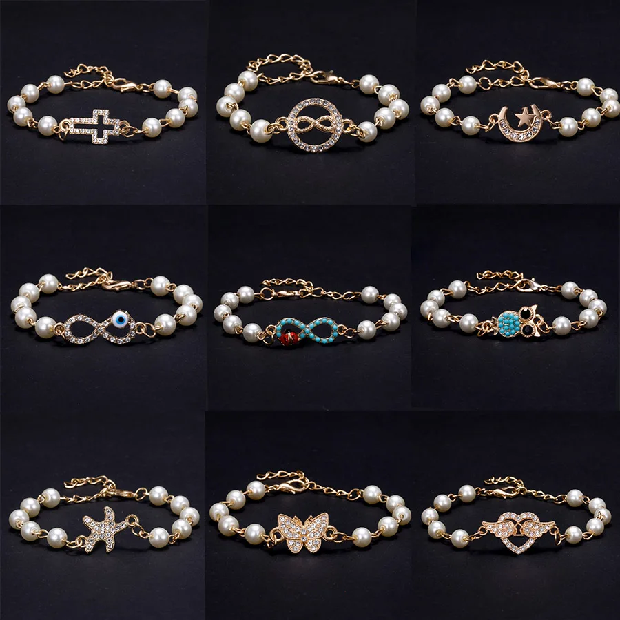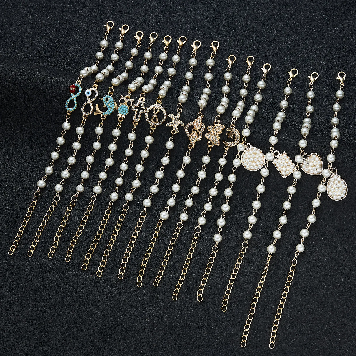 Лидер продаж 2021, модный браслет Rinhoo из звеньев, браслеты с подвесками в форме сердца и животных, браслет из искусственного жемчуга и бусин для женщин, ювелирные изделия 21 см