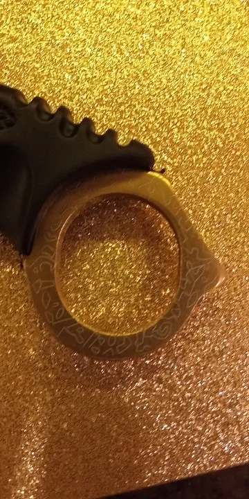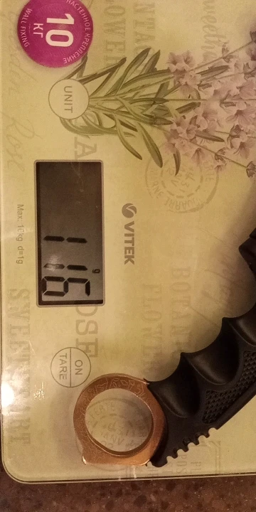 Отличный нож из железа и пластмассы. По сравнению с деревянным керамбитом он намного тяжелее. Рисунок на железе выцарапан или что то вроде того аккуратно, как на картинке. Железный с чехлом - 116 г Железный без чехла - 104 г Деревянный - 31 г