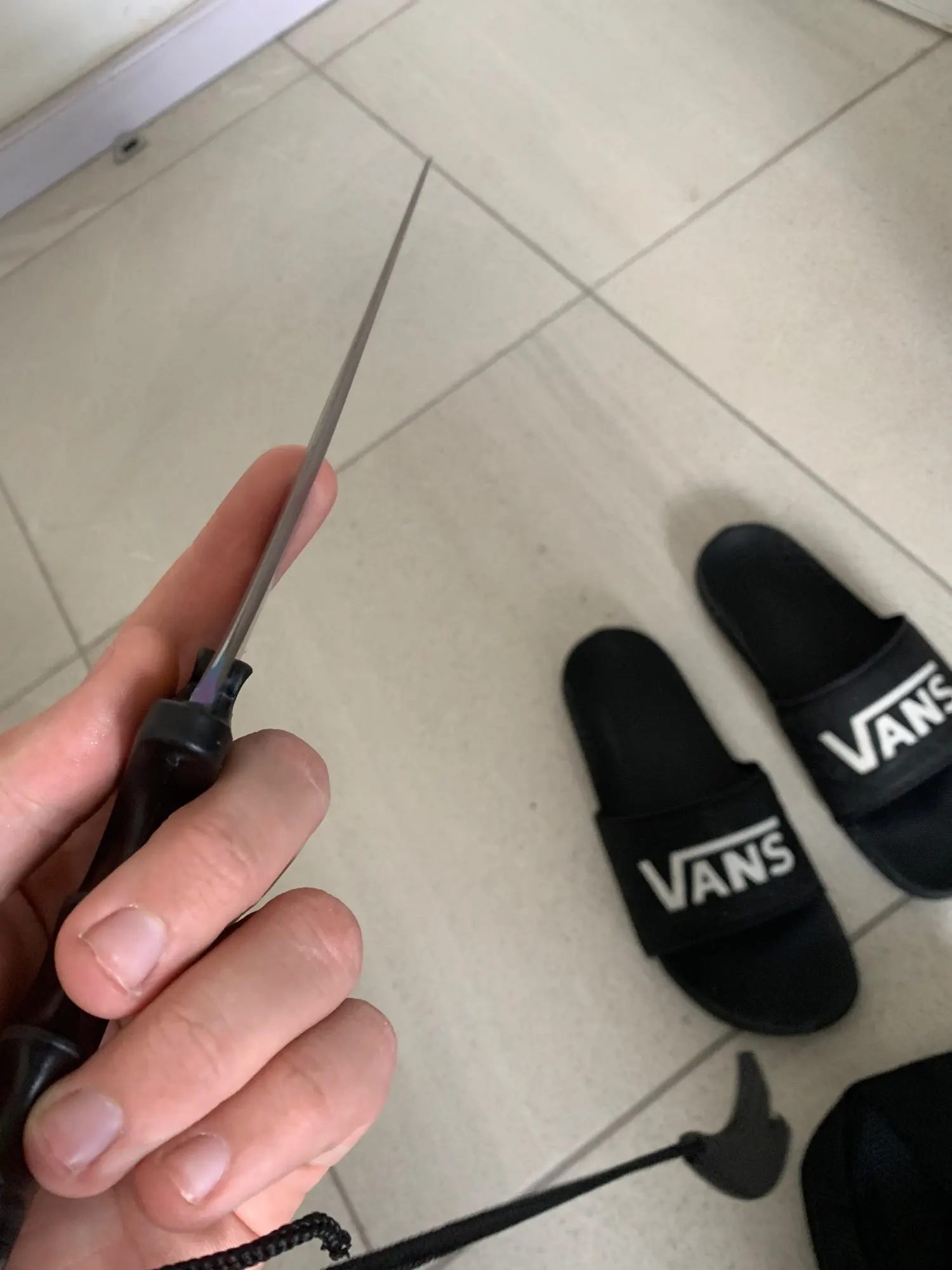 Нож опоздал всего на 1 день заточка китайская кривая пришлось самому точить кончик очень острый поэтому при заточке я два раза проткнул палец. Не отслеживался продавец молчал а сам нож красивый очень специально брал такую расцветку!