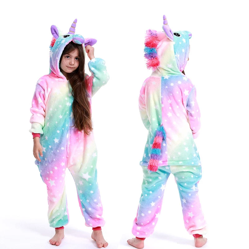 Детская Пижама, зимняя одежда для сна, комбинезон для мальчиков и девочек, пижамный комплект, единорог, Ститч, панда, динозавр, животные, Детская Пижама