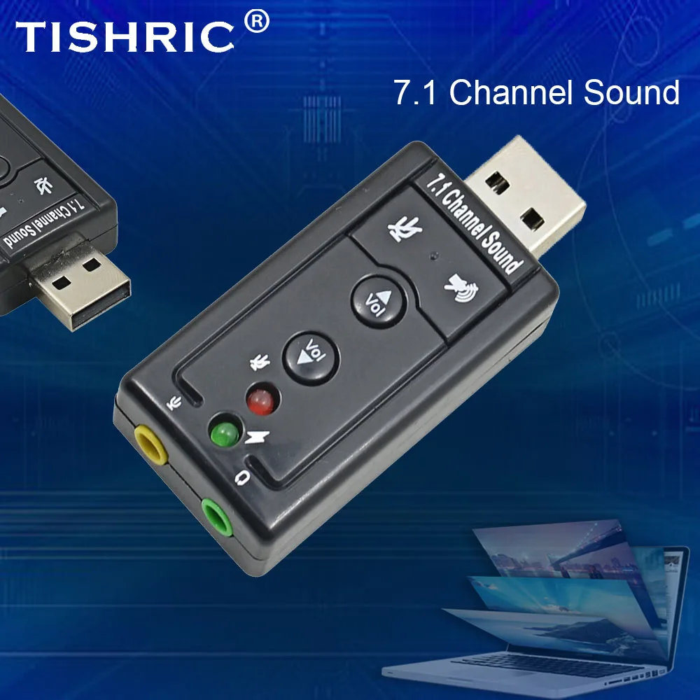Внешняя звуковая карта TISHRIC с USB, 7,1 каналов, 3D, разъем 3,5 мм, микрофон, интерфейс для наушников, виртуальный аудио адаптер для ноутбука и ПК