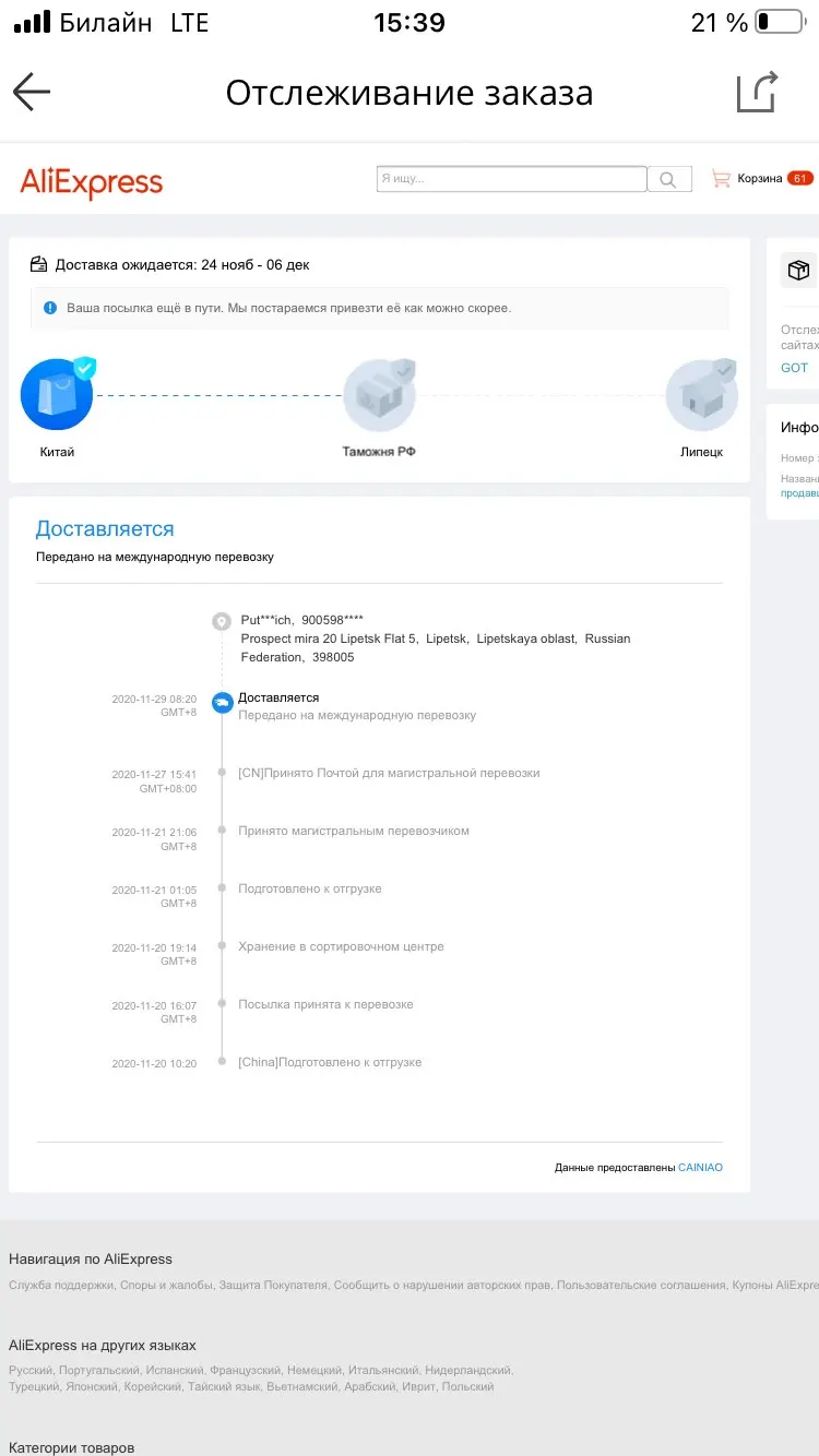 Страна: RU Доставка: Standard Shipping 17.11.2020