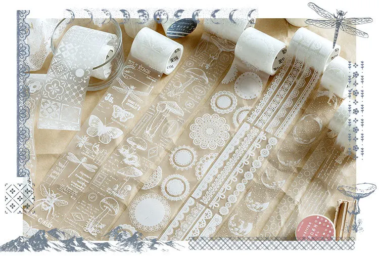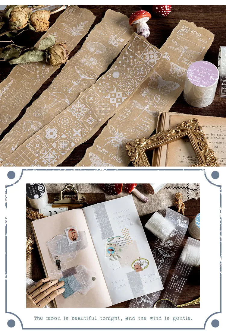 Винтажные растения гриб декоративная лента Washi прозрачная белая лента насекомых фазы наклейки с Луной клейкая лента декоративная DIY планировщик