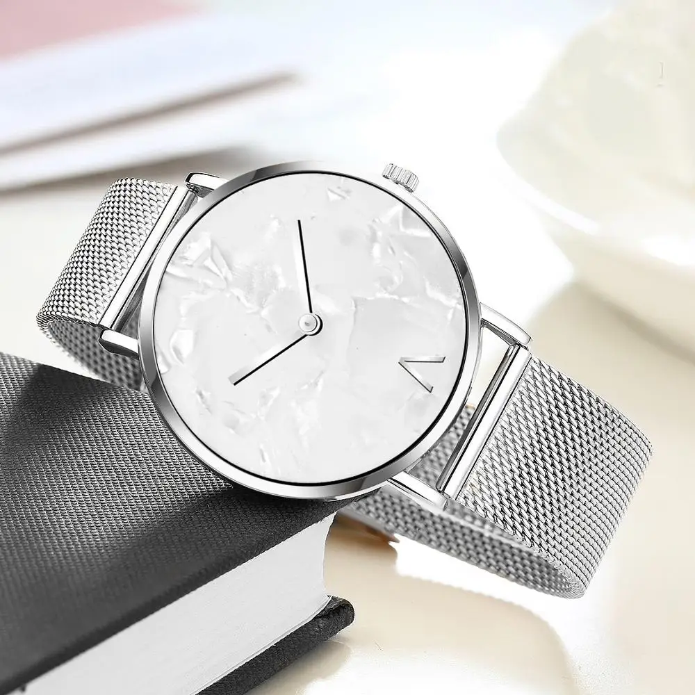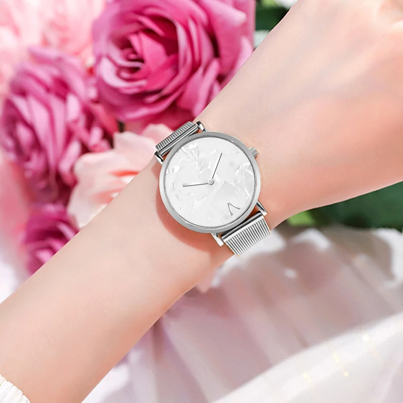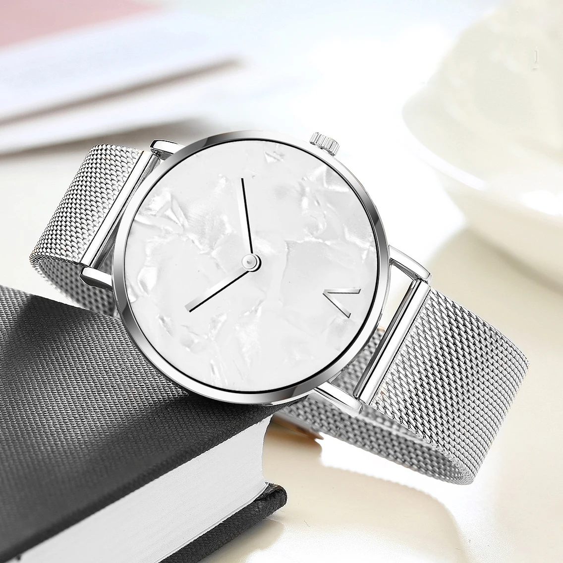 Роскошные креативные женские часы модные серебряные часы минималистичный сетчатый ремешок элегантные женские часы Reloj Mujer
