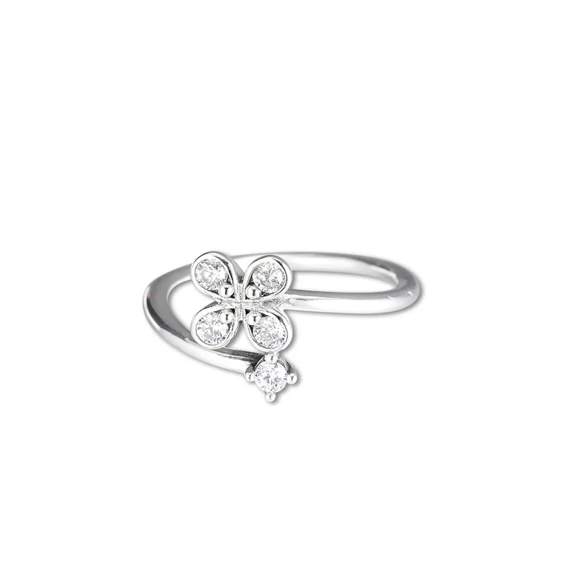 Женские кольца с цветком из четырех лепестков, модные кольца из стерлингового серебра 925 пробы, ювелирные изделия, циркониевые кольца с кристаллами для девочек, весенние ювелирные изделия, Новинка