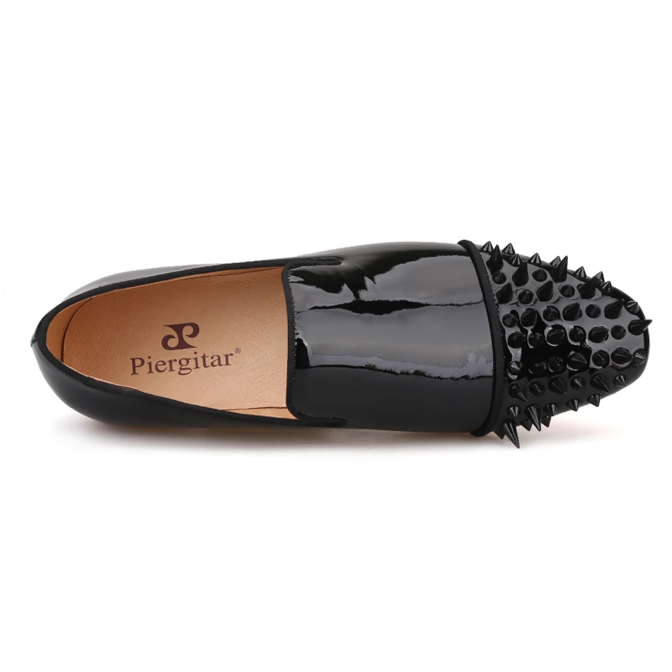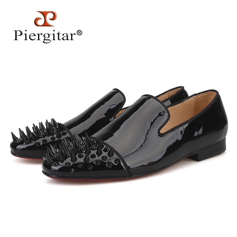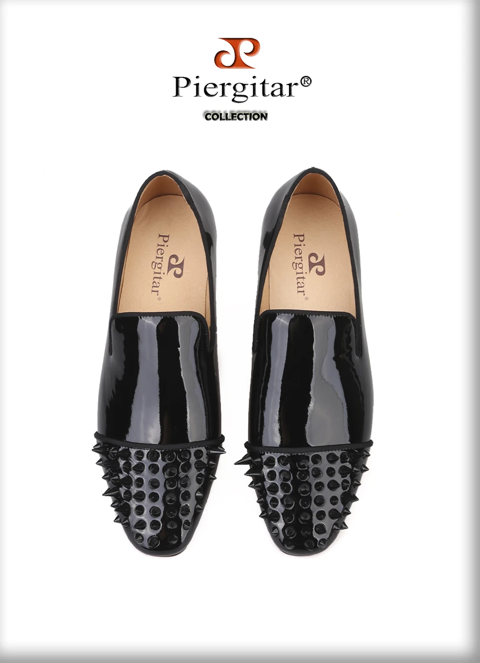 Новинка 2019, черные лакированные кожаные мужские лоферы Piergitar с черными длинными и короткими шипами, модная мужская классическая обувь для выпускного вечера и вечерние