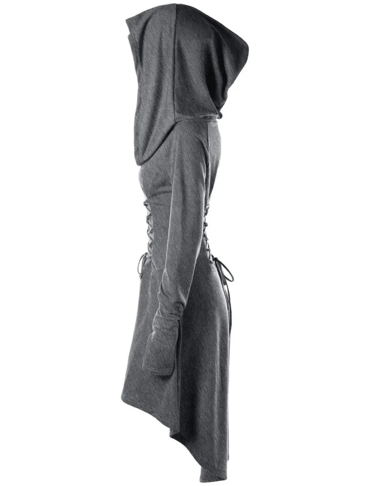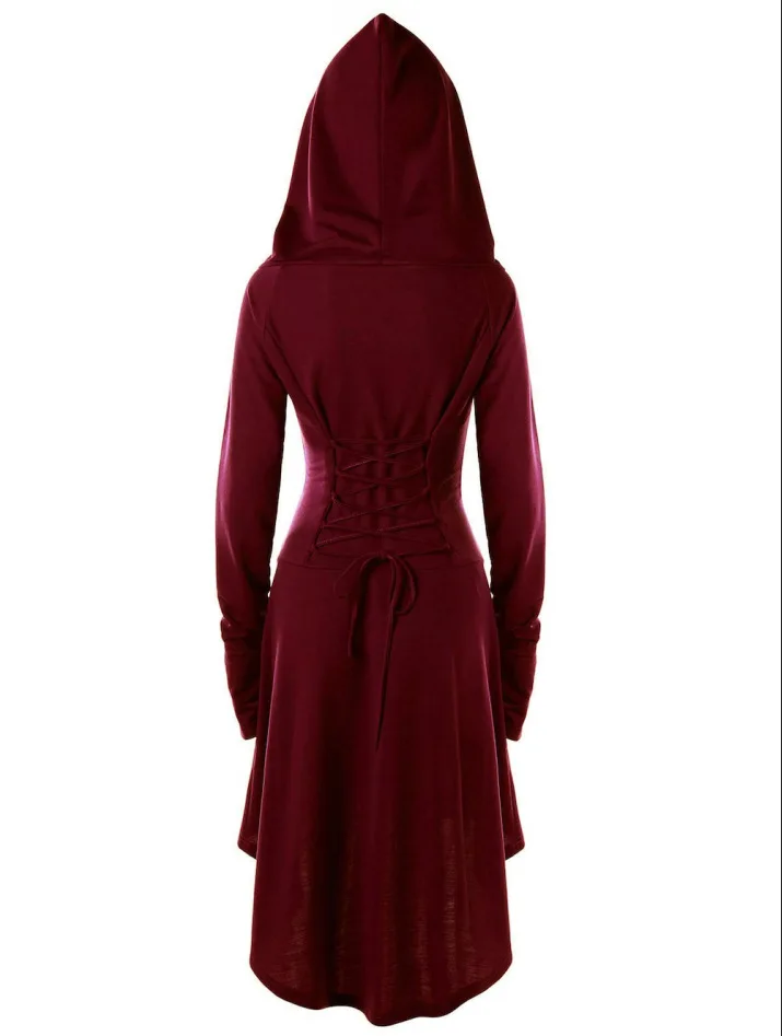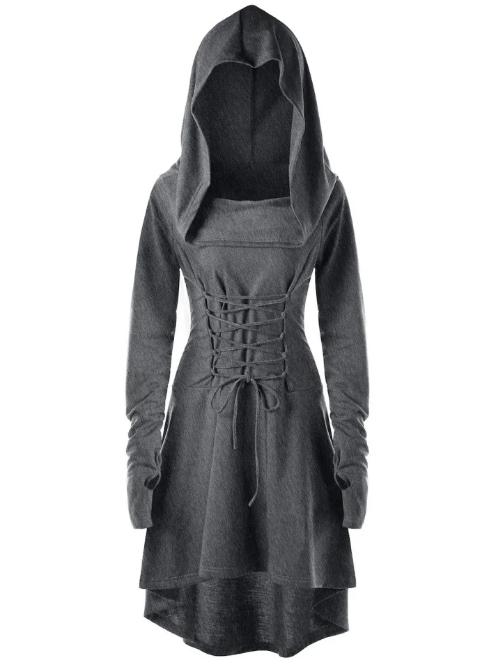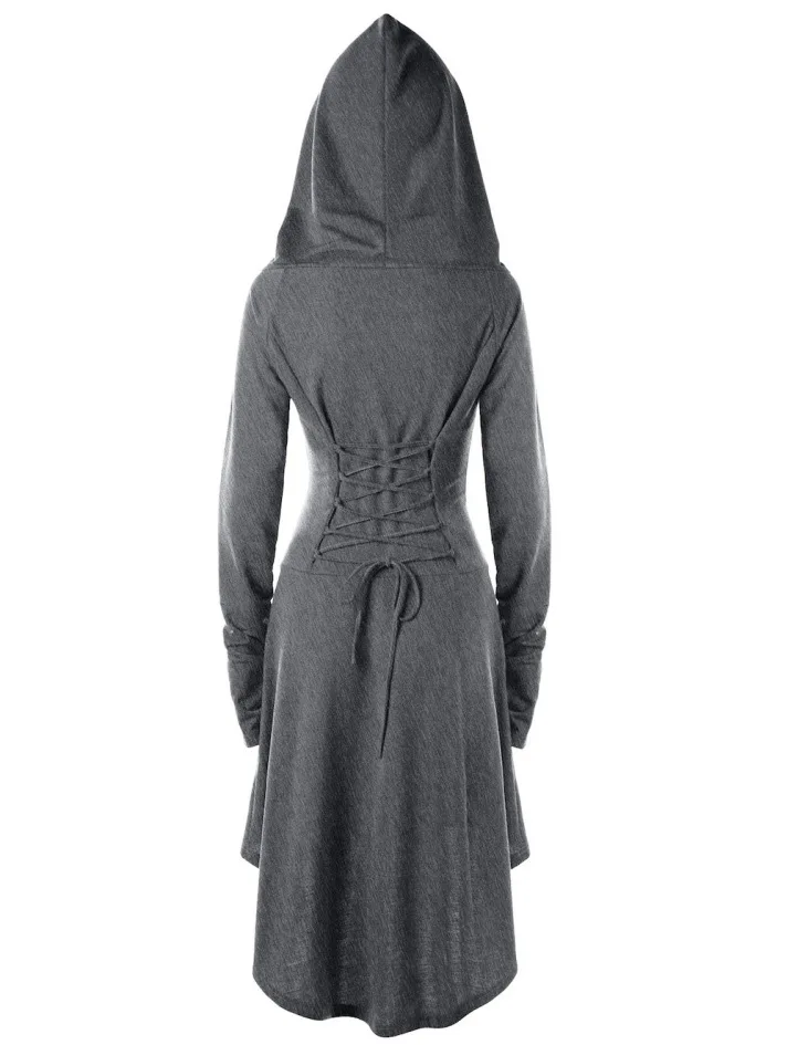 Средневековый женский костюм на шнуровке с капюшоном, платье с высокой посадкой для девушек, викторианское Повседневная куртка с капюшоном пальто
