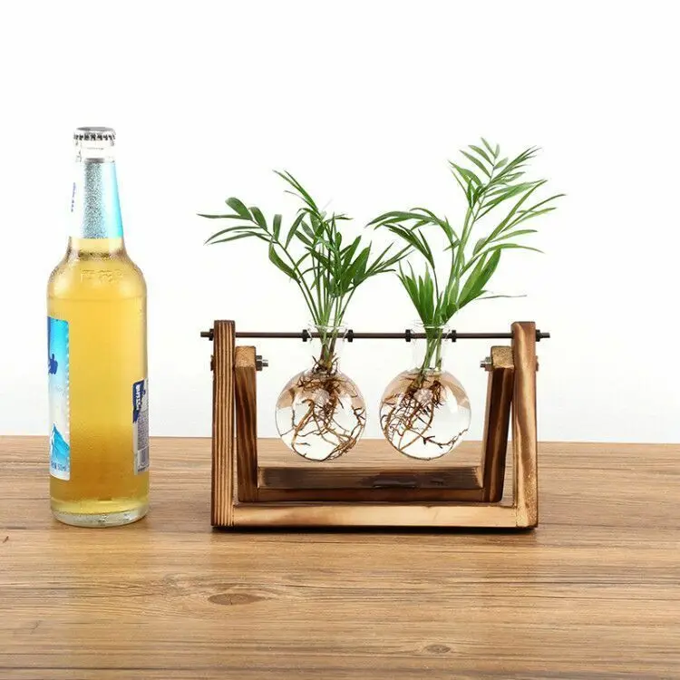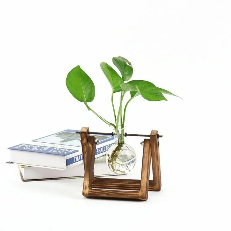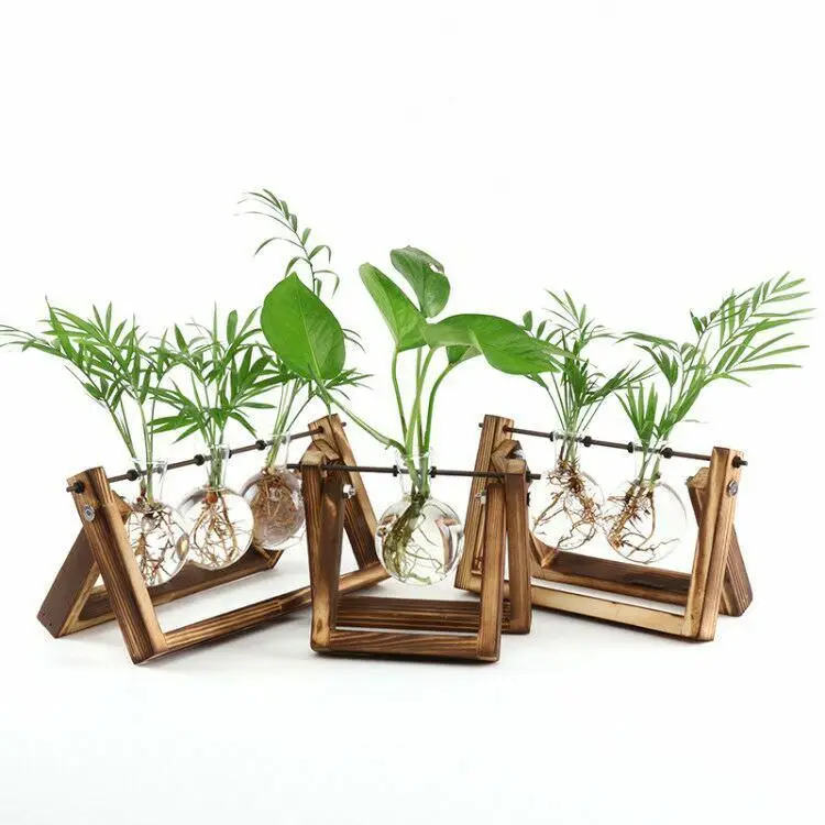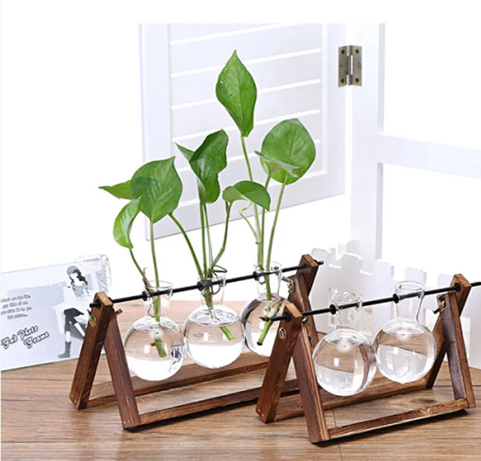 Прозрачная ваза для гидропонных растений, креативная декоративная ваза с деревянной рамкой, настольный бонсай для украшения цветов