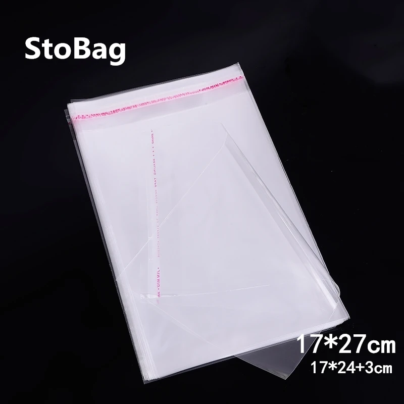 StoBag 100 шт. 17*27 см большие прозрачные самоклеящиеся полиэтиленовые пакеты OPP, многоразовые целлофановые пакеты, Подарочные Упаковочные пакеты для ювелирных изделий