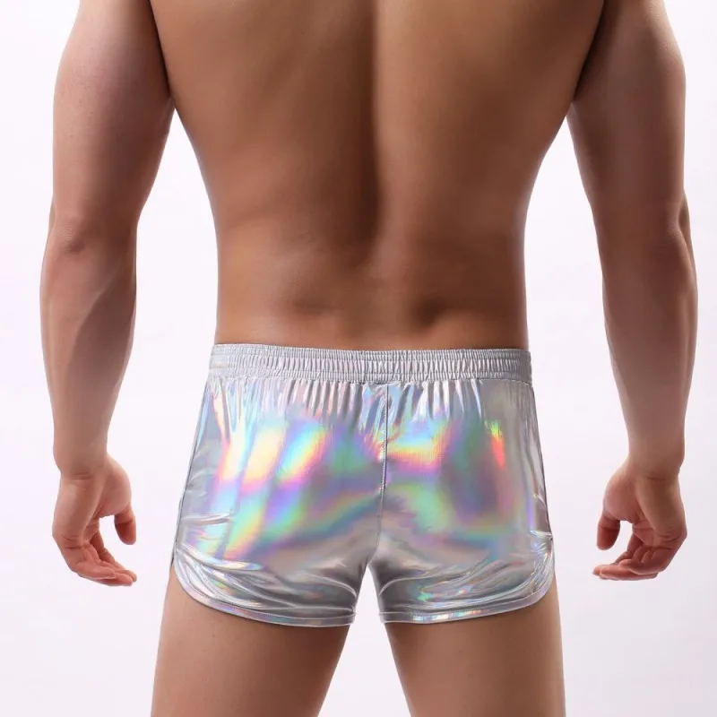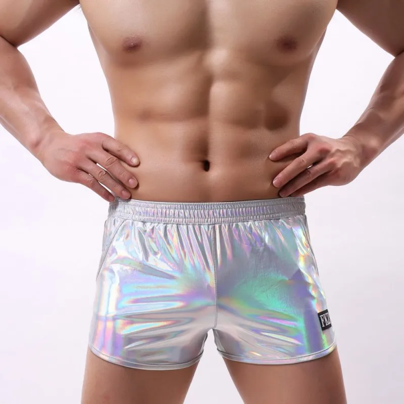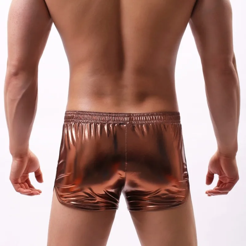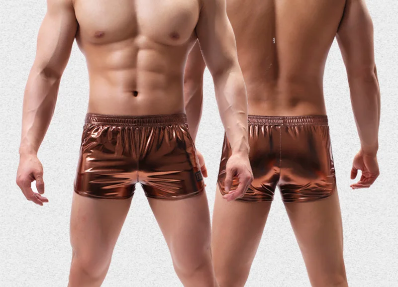 Мужские Блестящие трусы-боксеры с металлическим эффектом, сексуальные горячие брюки с мокрым эффектом, вечерние шорты для ночного клуба, эластичные трусы-боксеры