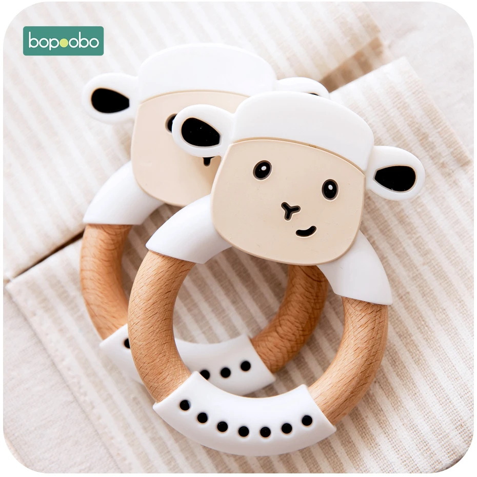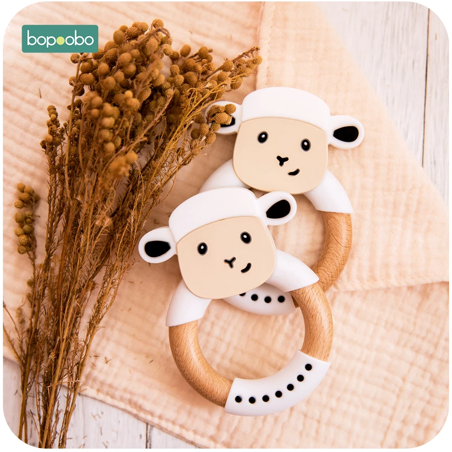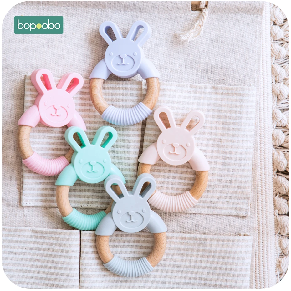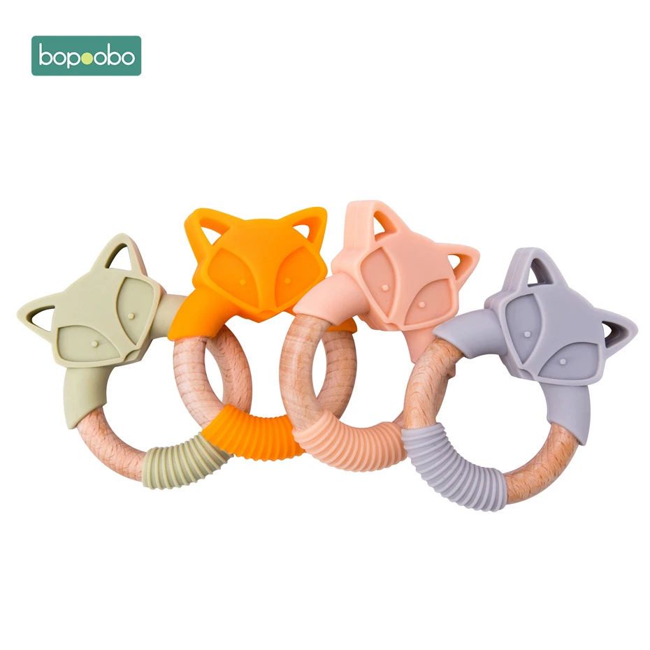 Bopoobo детские деревянные прорезыватели, жевательные силиконовые б...