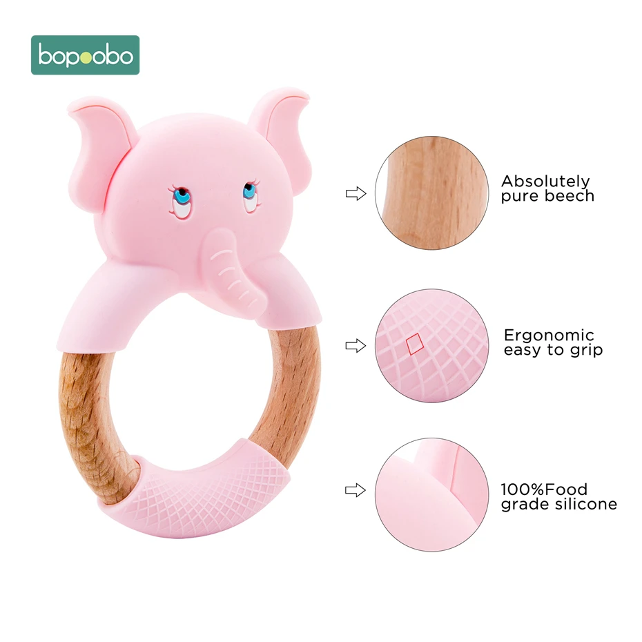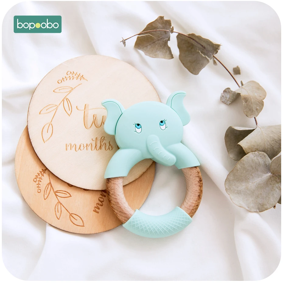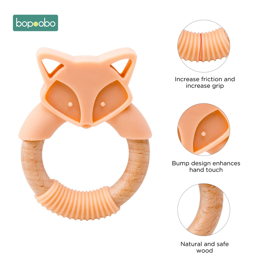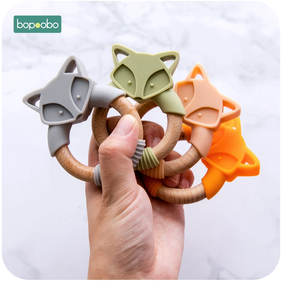 Bopoobo детские деревянные прорезыватели, жевательные силиконовые б...