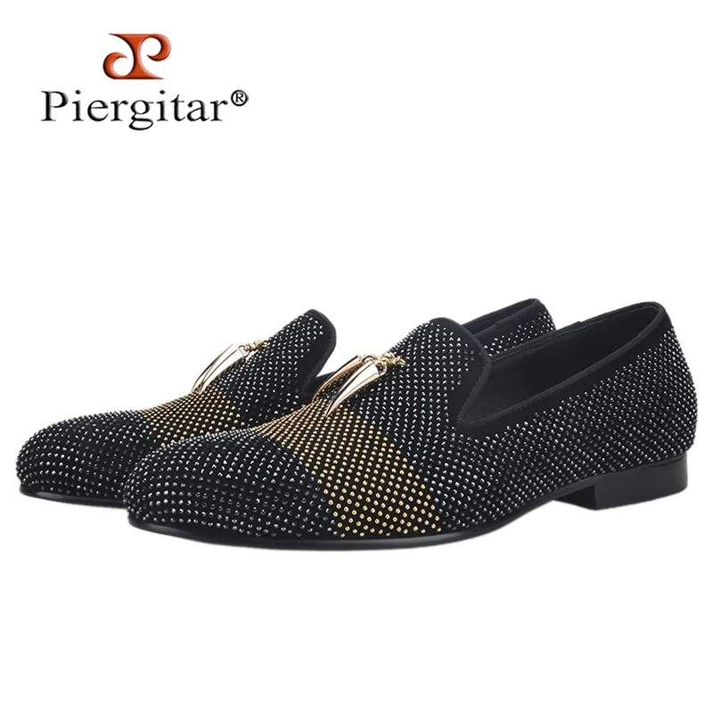Piergitar 2021 новый стиль смешанные цвета Стразы Мужская обувь кожаная верхняя и стелька для вечерние НКИ и свадьбы Слипоны мужские лоферы