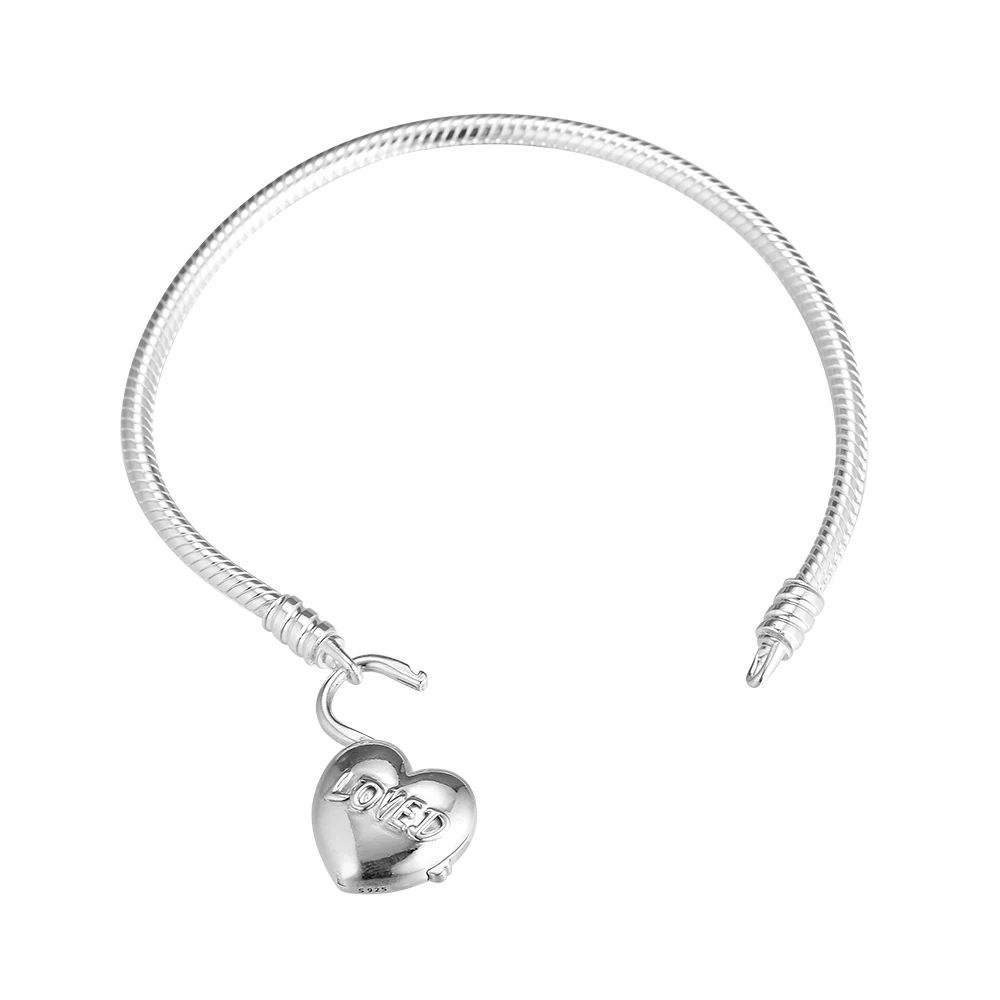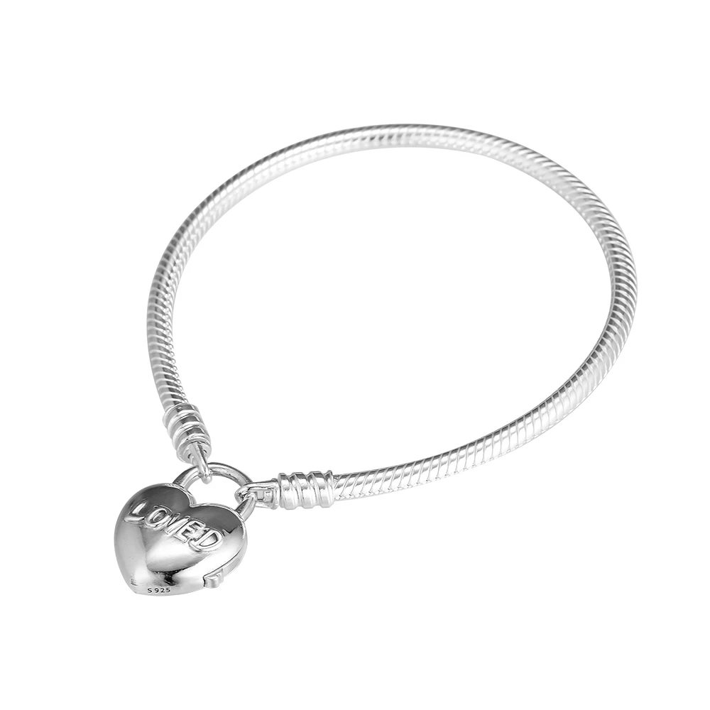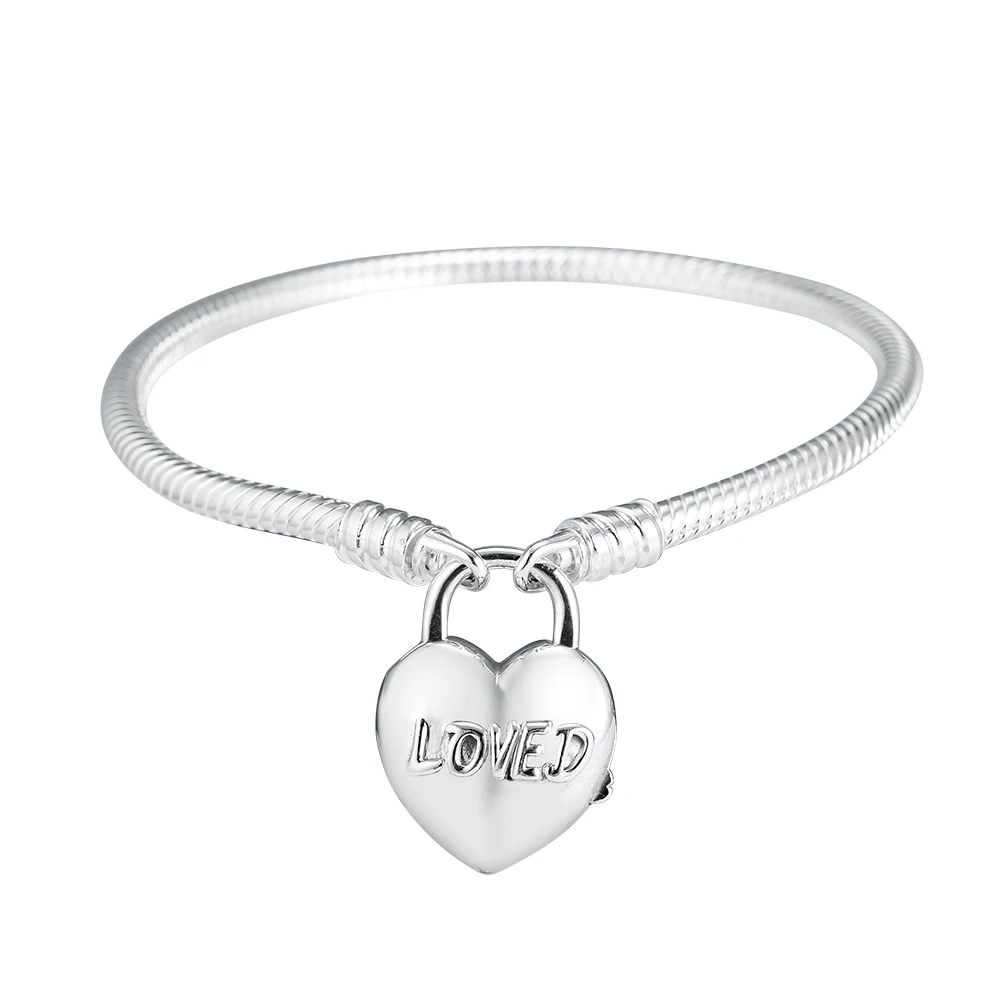 Гладкий Браслет с любимым сердцем и застежкой висячего замка для женщин, бусины и шармы сделай сам, браслеты из стерлингового серебра, модные ювелирные изделия