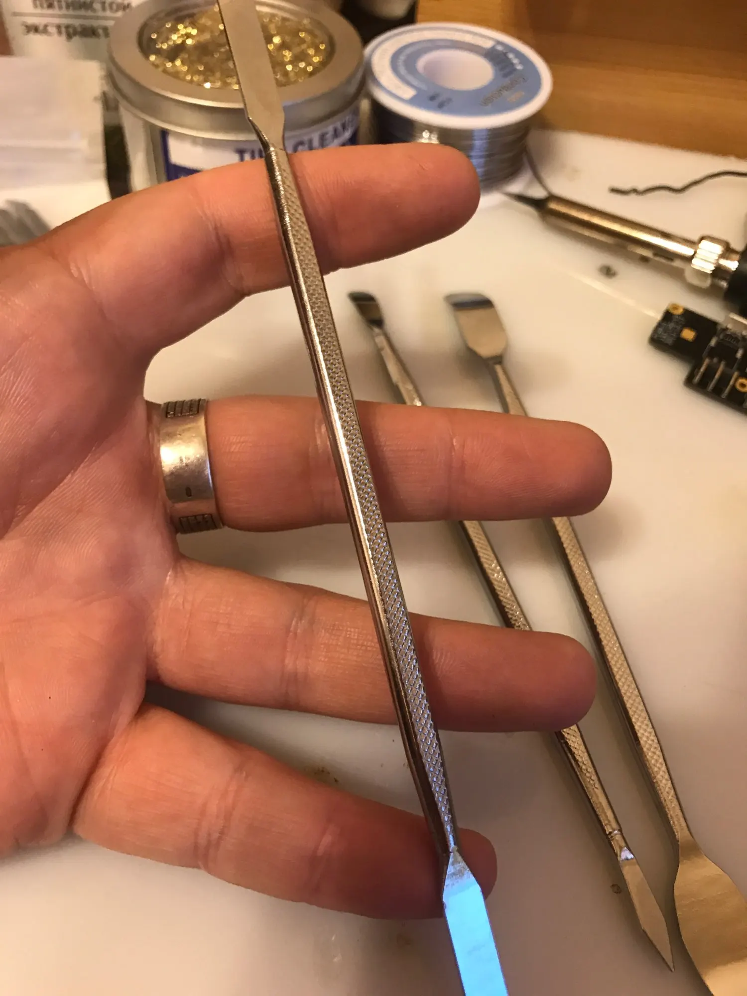 Хороший удобный веш для всего отпайки детали и открыт не доступные вещи как нож.