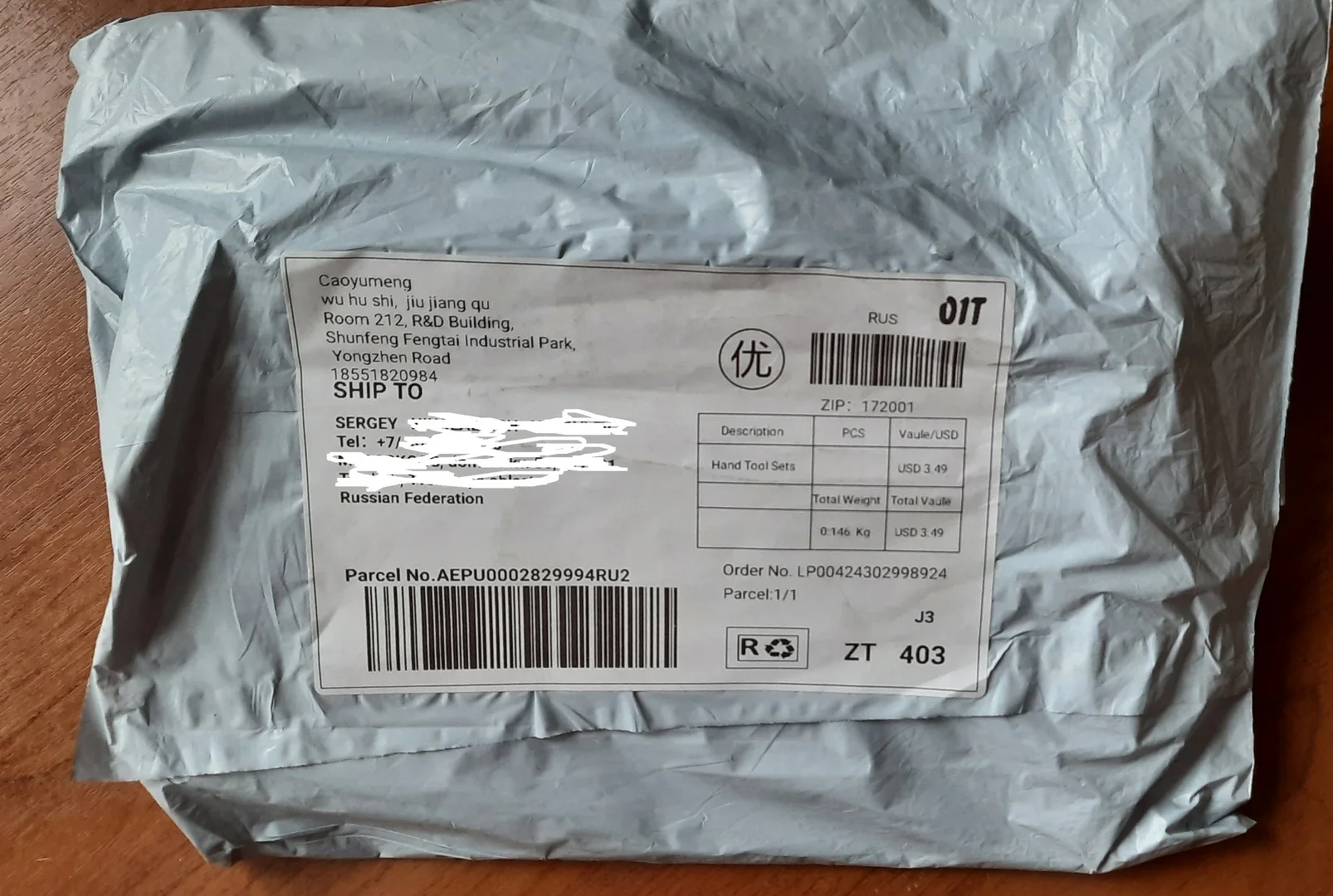 Страна: FR Доставка: Cainiao Super Economy Global 11.01.2021