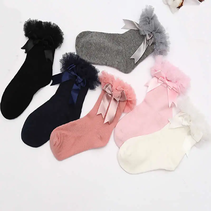 Кружевные носки с бантом из ленты для девочек