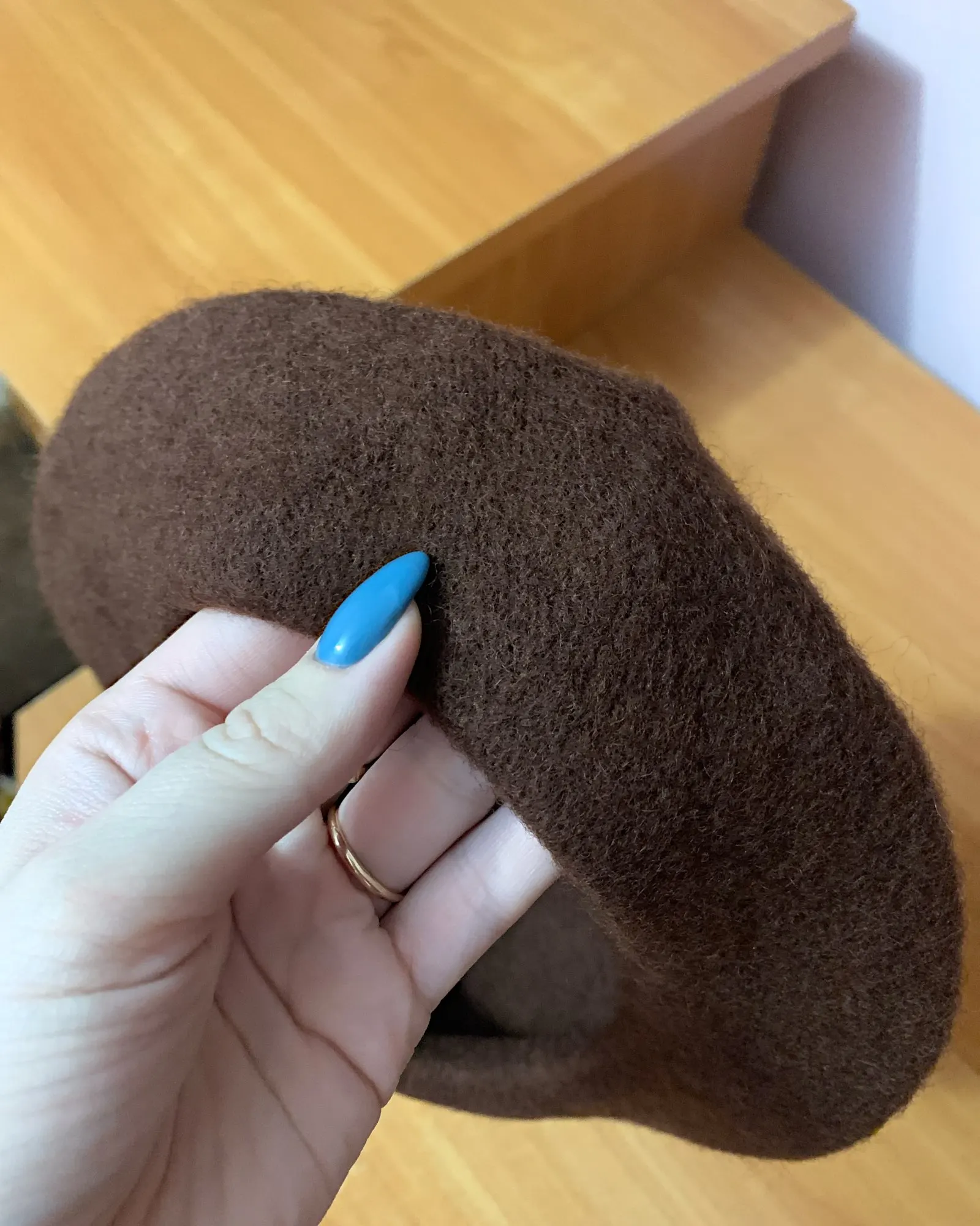 Однотонный винтажный берет, шапки, французские береты, теплая шерст...