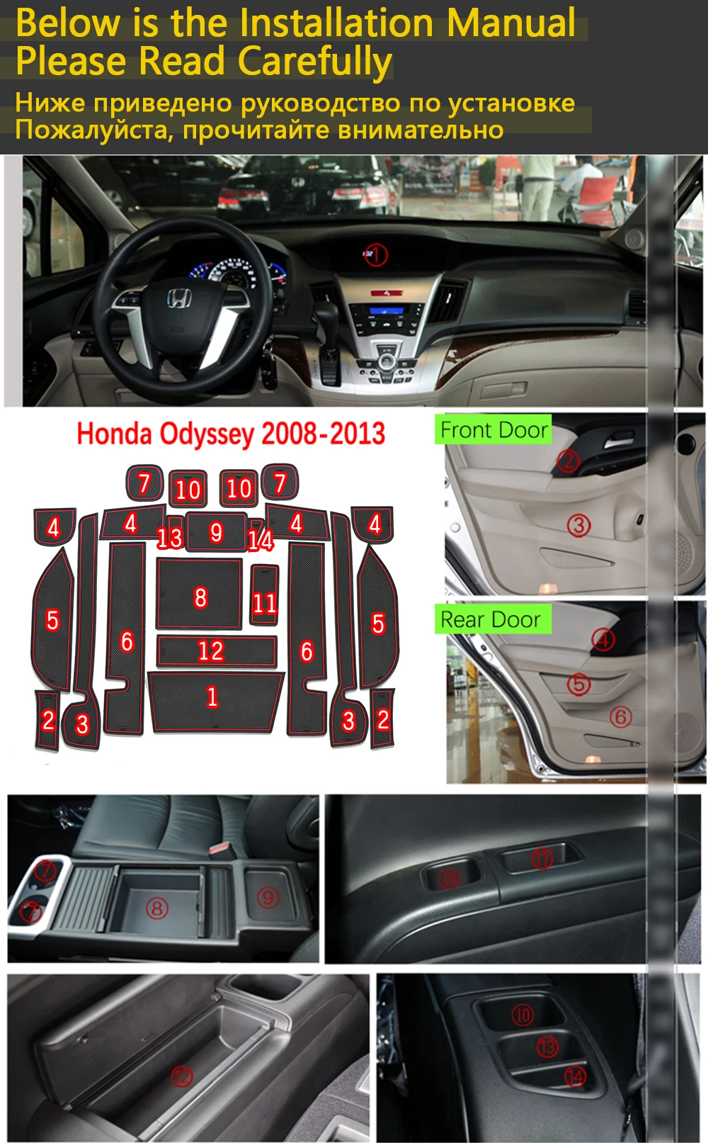 Противоскользящий резиновый коврик для чашки, для Honda odysley Jepan JDM Model RB3 RB4 2008 2013, автомобильные аксессуары, коврик для телефона