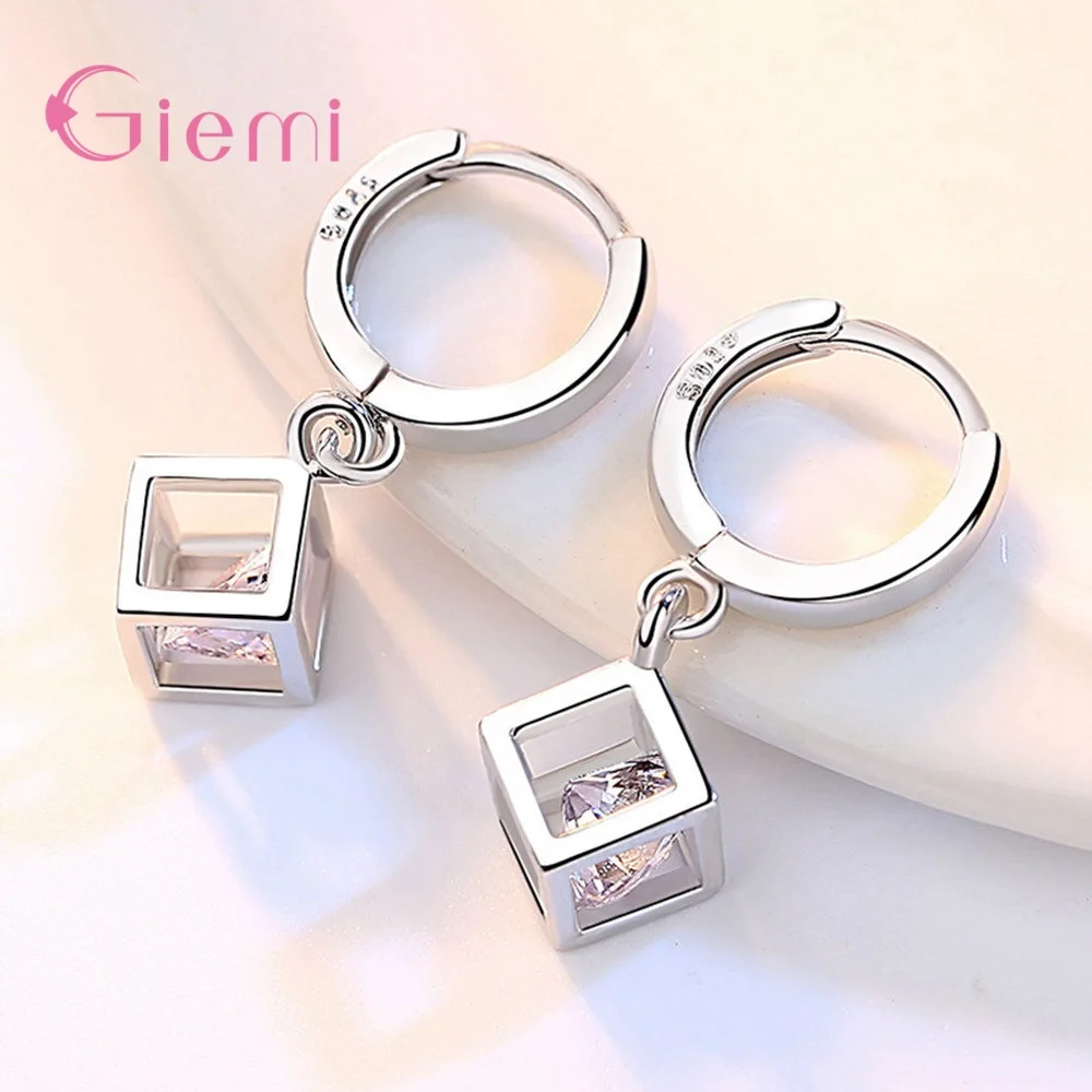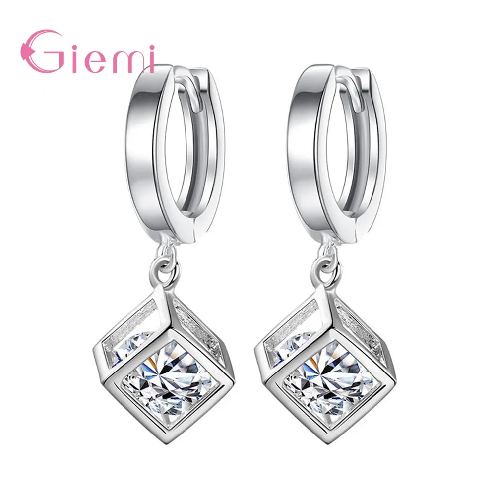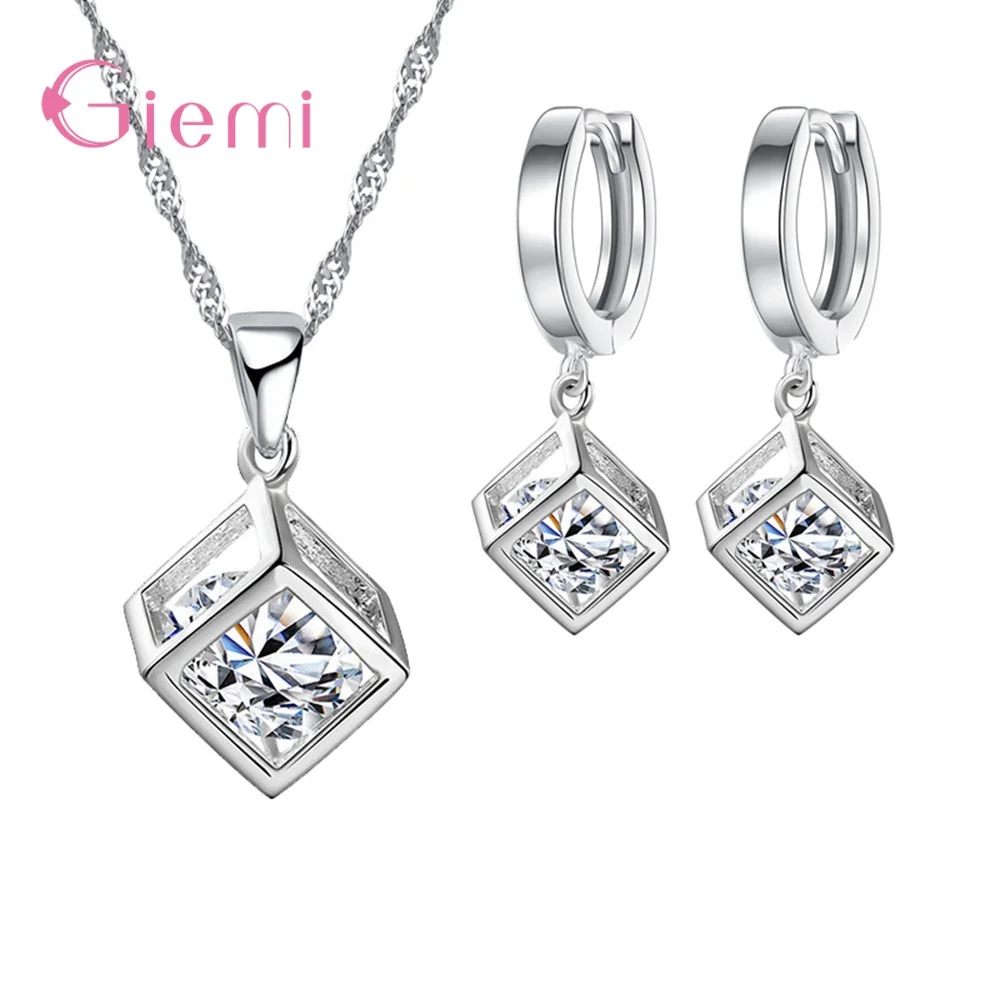 Оригинальный креативный набор ювелирных изделий из стерлингового серебра 925 пробы кубический циркон Suqare Подвеска Ожерелье Висячие серьги для женщин