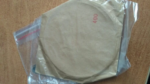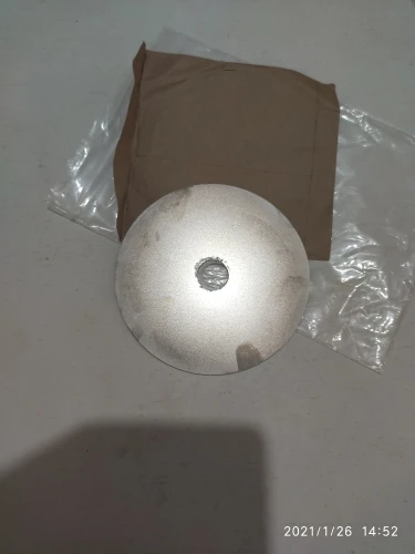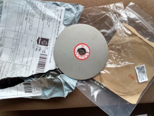 Диск пришёл через 12 дней. Имейте в виду, что напыление одностороннее. Рекомендую заказывать пару дисков, один с крупным зерном, другой с мелким - для доводки.
