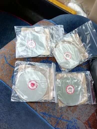 Todo perfecto. Discos de pulido de calidad. Discos bien nivelados, materia abrasiva muy bien repartida en la superficie. Las graduaciónes más finas muy precisas. Envío rápido según indicaciones. Recomendaría la compra. Gracias.