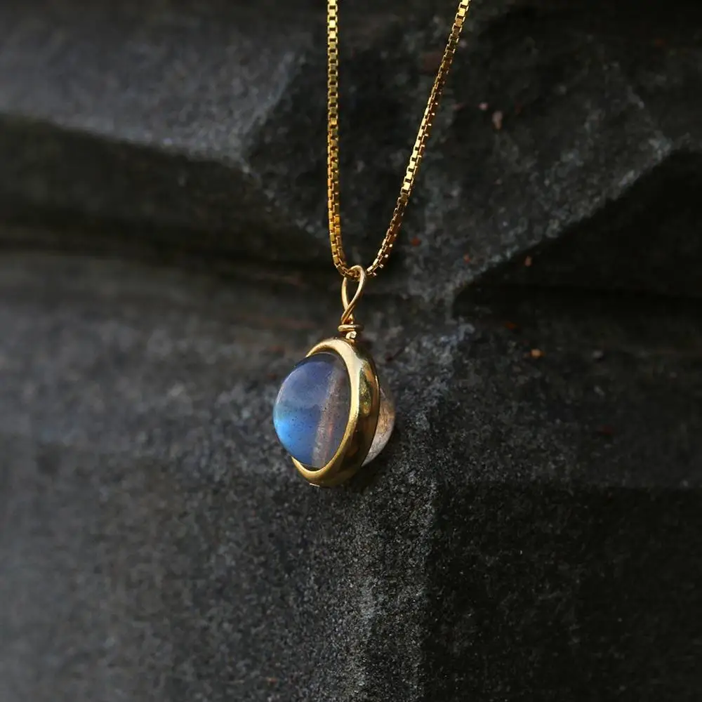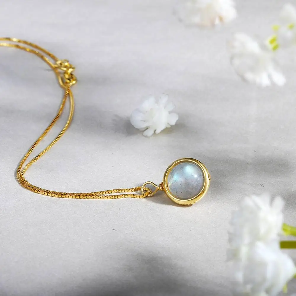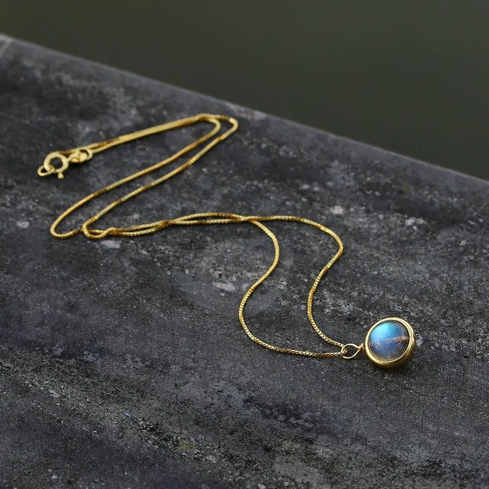 Роскошное ожерелье из стерлингового серебра 925 пробы с подвеской из натурального Лабрадорита для женщин, изящное Ювелирное Украшение золотого цвета, бижутерия 2021