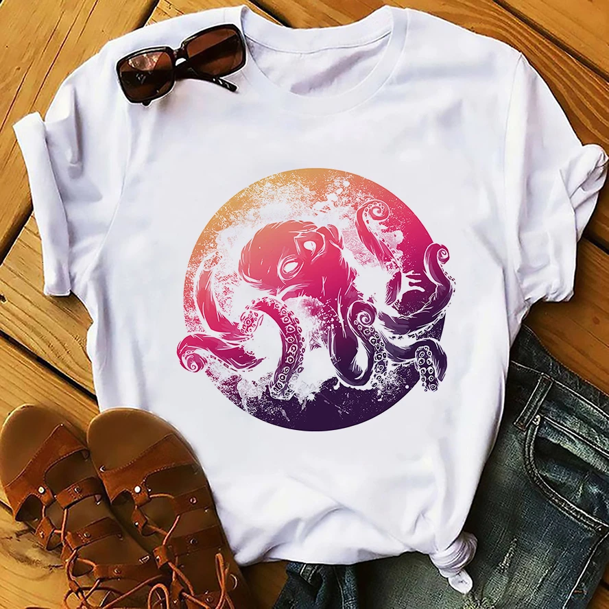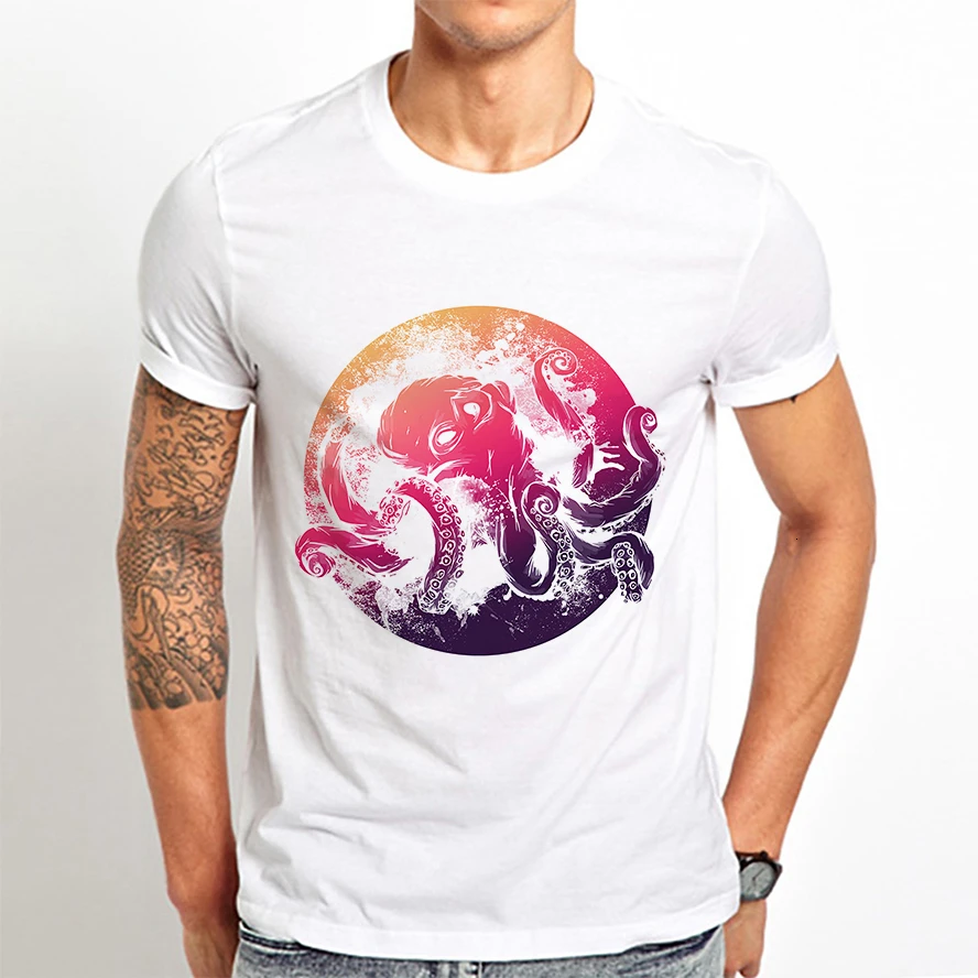 Мужская винтажная футболка с изображением осьминога, новая белая Повседневная Уличная одежда унисекс, футболка в стиле Харадзюку