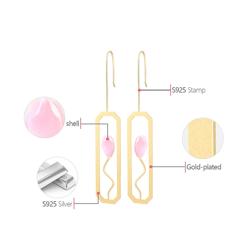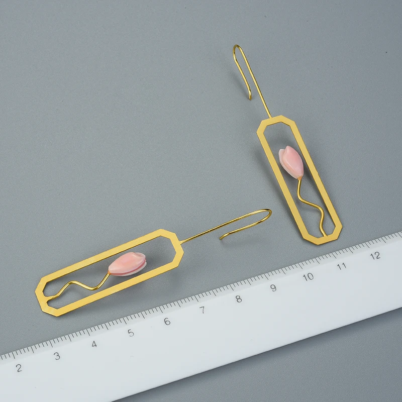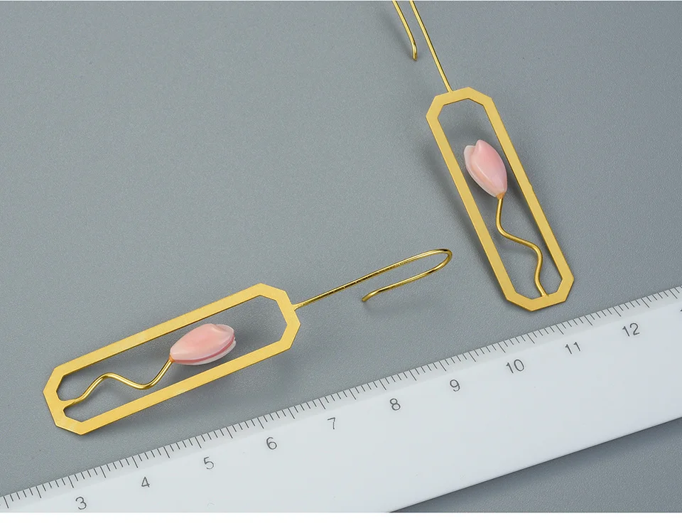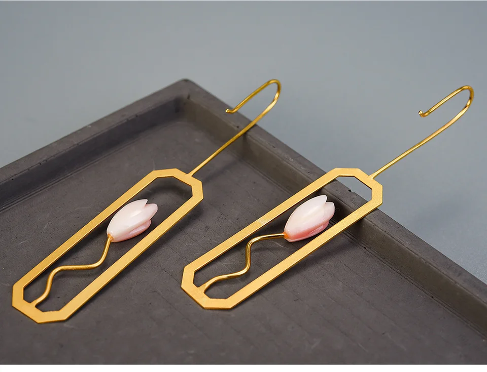Женские серьги-подвески цветок лилии Lotus Fun, прямоугольные серьги из настоящего серебра 925 пробы с натуральными ракушками и 18-каратным золотом, ювелирные изделия ручного изготовления