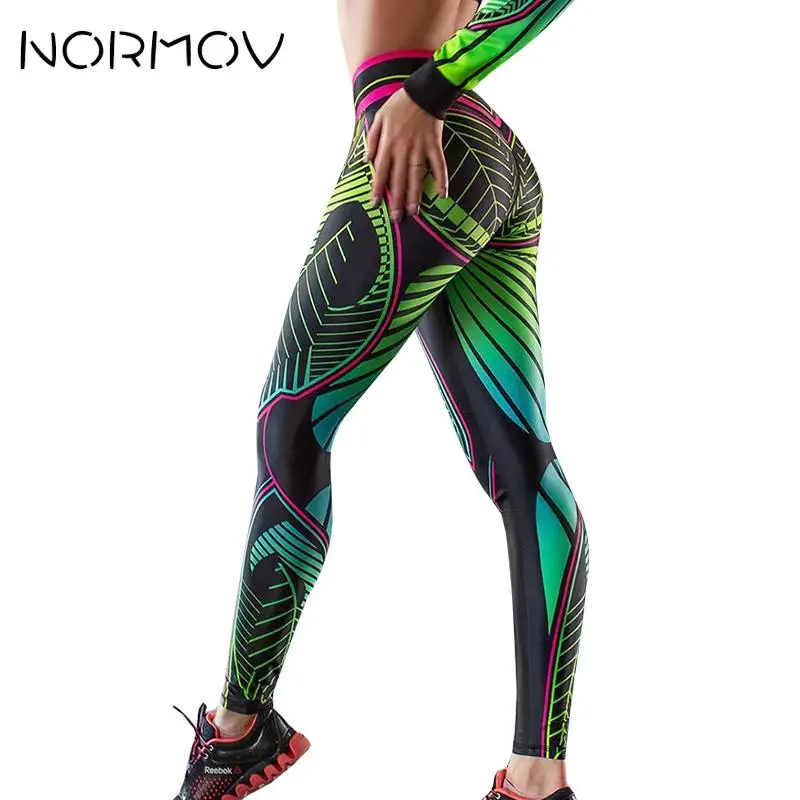 Женские легинсы для занятий фитнесом с цифровой печатью NORMOV, спортивные легинсы с высокой талией, леггинсы для тренировок, эластичные леггинсы для фитнеса
