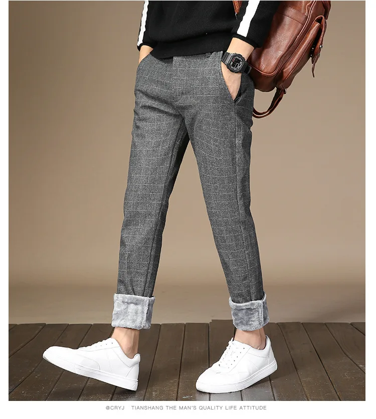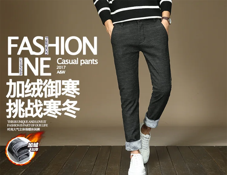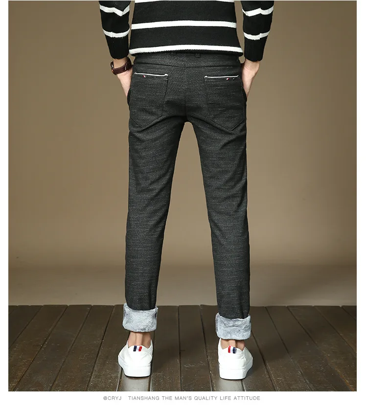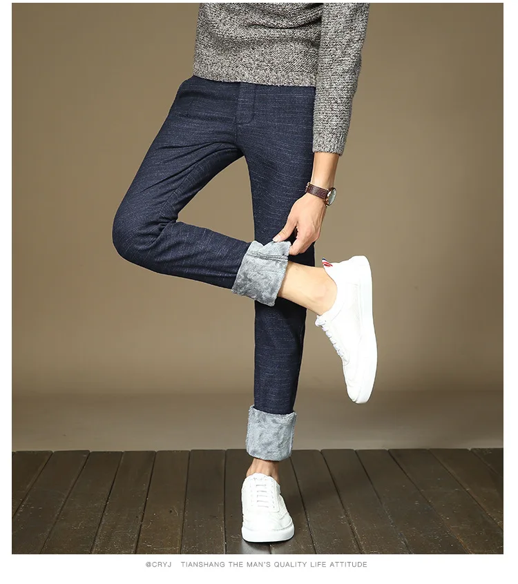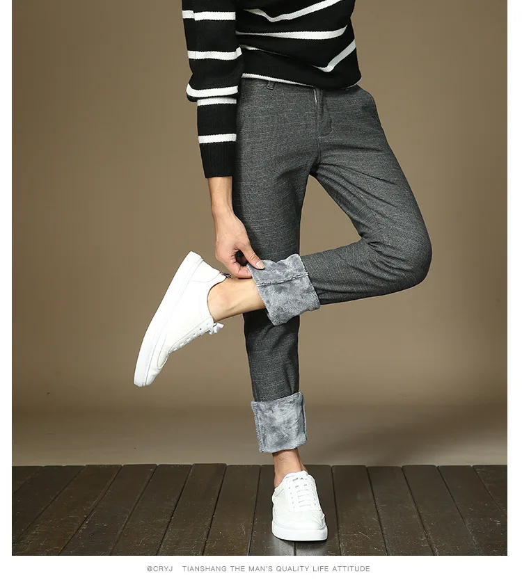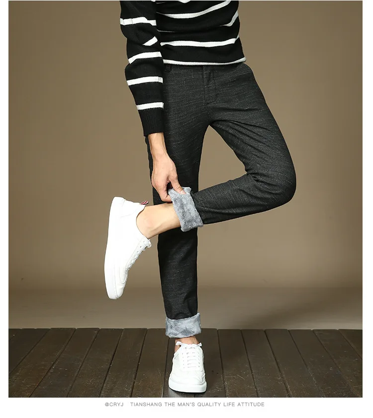 Длинные брюки 2020 зимние сохраняющие тепло тонкие модные мужские брюки термальные узкие брюки повседневные мужские деловые мужские MOOWNUC Masculino
