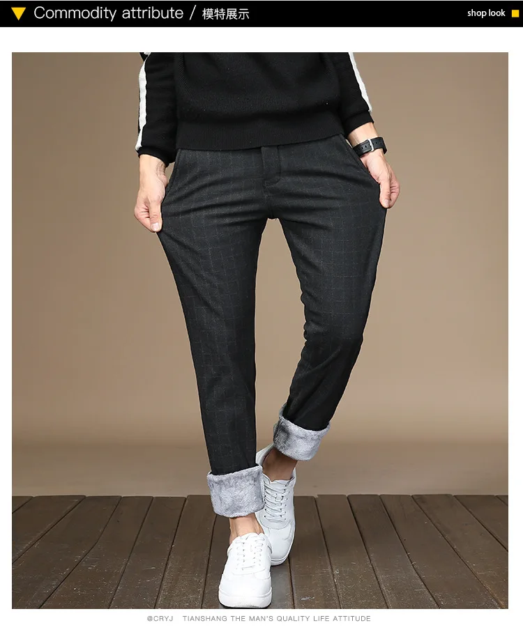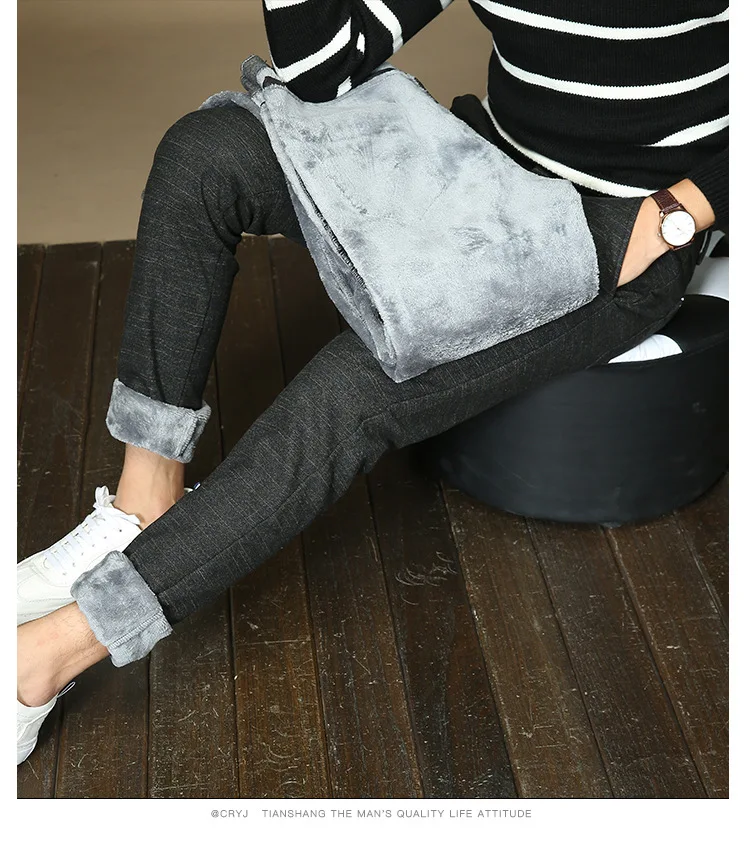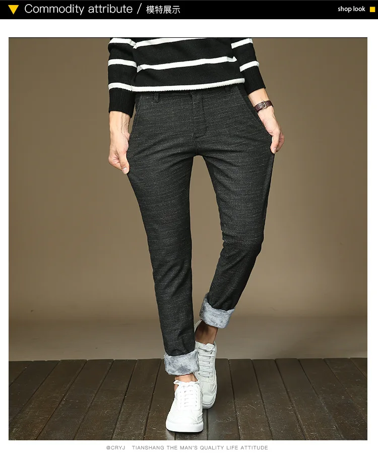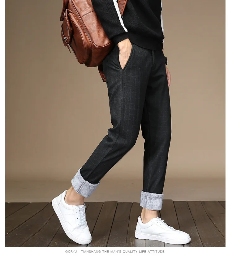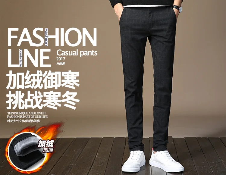 Длинные брюки 2020 зимние сохраняющие тепло тонкие модные мужские брюки термальные узкие брюки повседневные мужские деловые мужские MOOWNUC Masculino